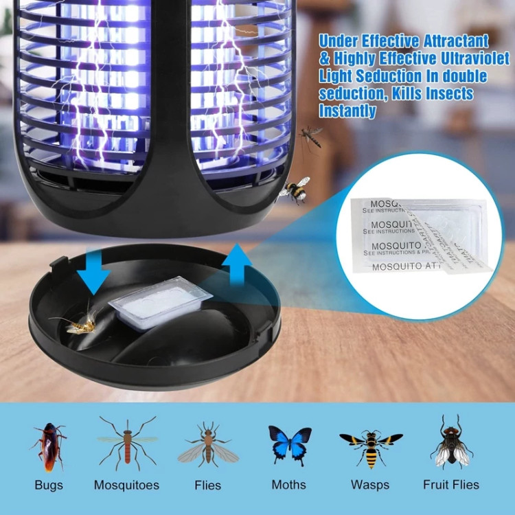 🪰 کشتن موثر پشه ها: تله پشه چند جهته 360 درجه که از طول موج فرابنفش (365 نانومتر) استفاده می کند که پشه ها نمی توانند در برابر آن مقاومت کنند. شبکه ولتاژ بالا 4000 ولت می تواند به سرعت پشه ها، پروانه ها، مگس های میوه و سایر حشرات پرنده را از بین ببرد.