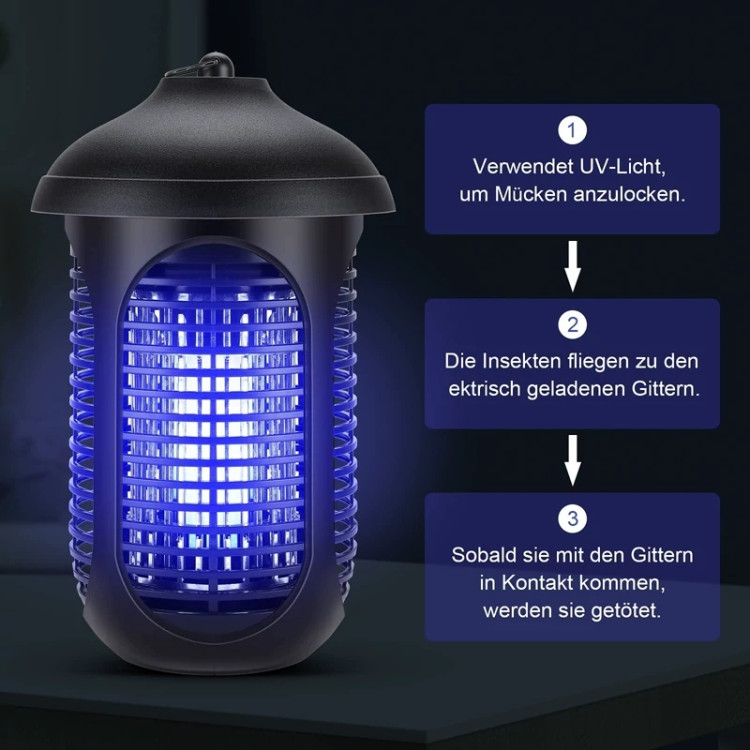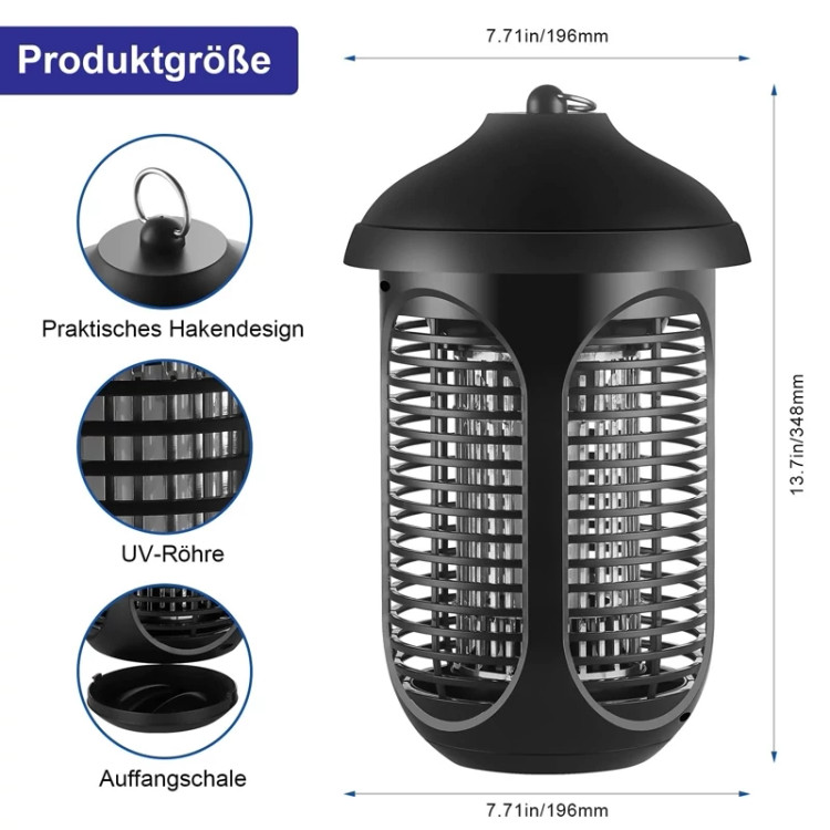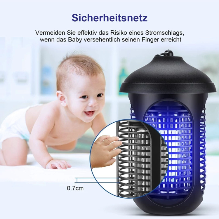 🪰 IPX4 ضد آب: به لطف طراحی ضد آب، لامپ حشره برای استفاده در فضای باز مناسب است. می توانید آنها را در فضای باز آویزان کنید، به عنوان مثال. در پاسیو یا در باغ