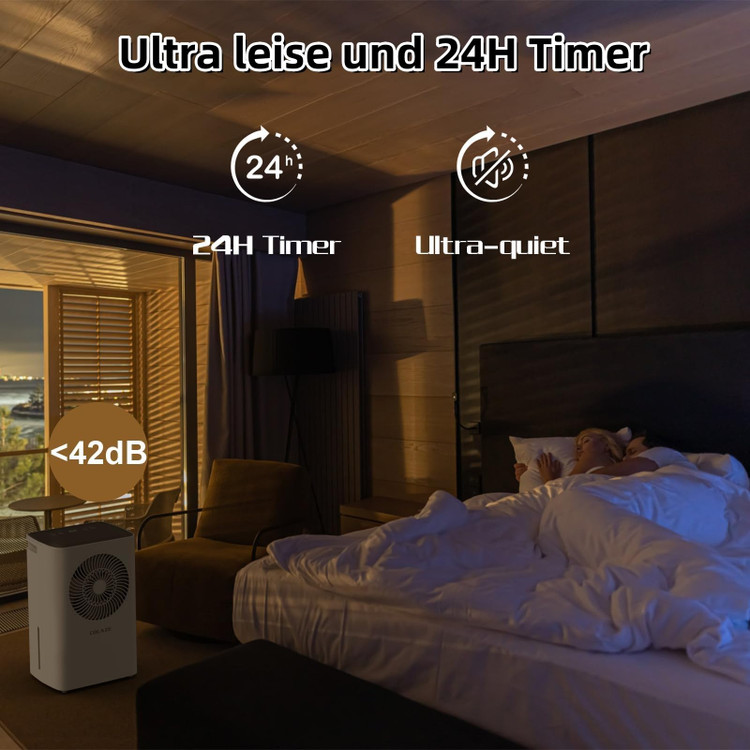 ✅️【فوقالعاده بیصدا و تایمر 24 ساعته】- به دلیل طراحی پیشرفته کاهش نویز، صدای رطوبتگیر خانگی بیش از 42 دسیبل نیست، صدای مکالمه معمولی حدود 60 دسیبل است و صدای ماشین لباسشویی حدود 70 دسیبل است. این دستگاه هنگام خواب، تماشای تلویزیون، مطالعه و گوش دادن به موسیقی مزاحم شما نخواهد شد. و دارای قابلیت زمانبندی روشن/خاموش است که به شما کمک میکند تا راحتتر از آن استفاده کنید.