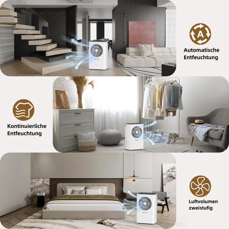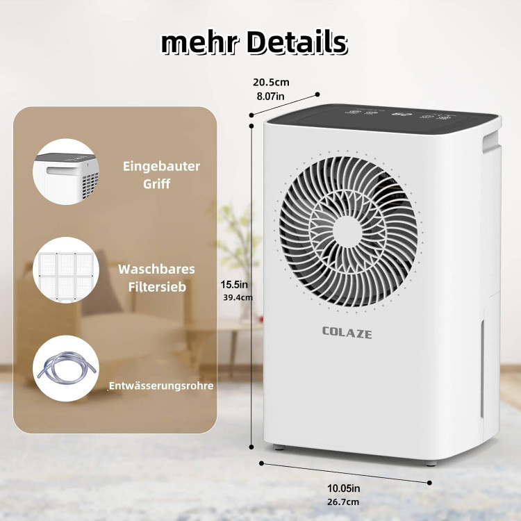 ✅️【رطوبتزدایی کارآمد ۱۲ لیتر در روز】رطوبتگیر اتاق COLAZE میتواند تا ۱۲ لیتر رطوبت در روز (در دمای ۳۰ درجه سانتیگراد و ۸۰٪ رطوبت نسبی) را حذف کند. این دستگاه برای اتاقهای کوچک و متوسط با مساحت ۱۲ متر مربع مناسب است و میتواند رطوبت را از ۸۰٪ تا ۳۰٪ تنظیم کند. این یک رطوبتگیر عالی است که میتواند رطوبت را در زیرزمین، حمام، اتاق خواب، آشپزخانه، اتاق نشیمن، اتاق رختشویی و غیره کاهش دهد.