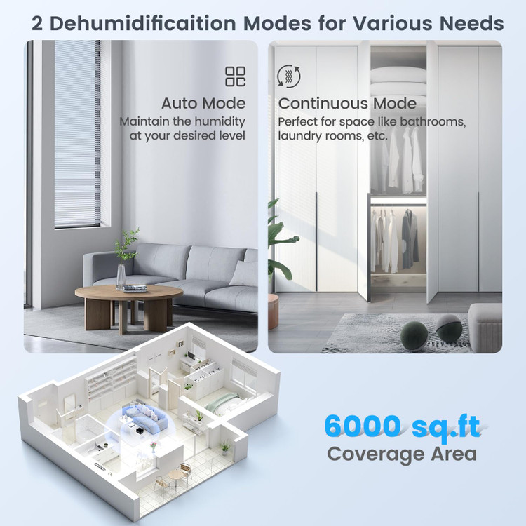✅️ خشک کردن لباس: این رطوبتگیر مخصوص خانه، راهحل مناسبی برای نیازهای خشک کردن لباس شماست. این دستگاه به طور مؤثر رطوبت اضافی هوا را از بین میبرد و در نتیجه زمان خشک شدن لباسهای مرطوب شما را سریعتر میکند. رطوبتگیر کمپرسور مجهز به دو خروجی هوا است که میتواند گردش هوا را در اتاق یا مکانهای دیگر بهبود بخشد.