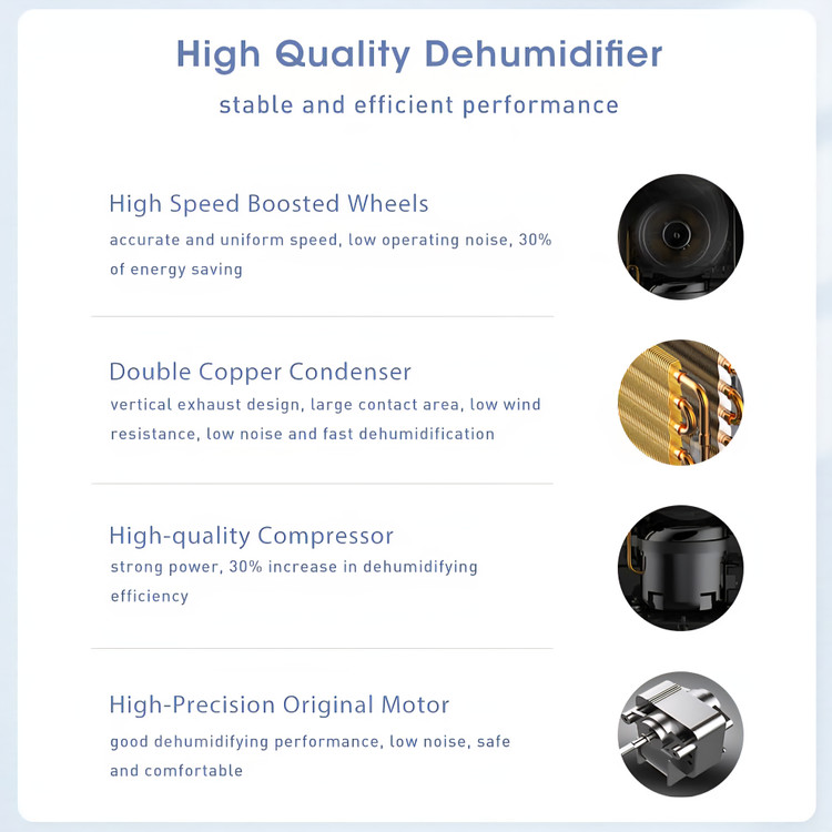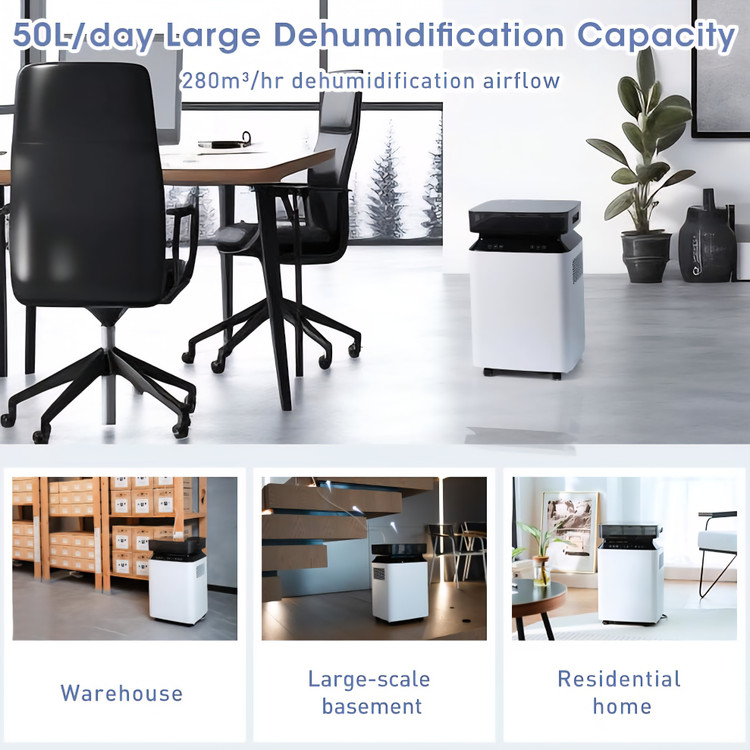 ✅️ ظرفیت رطوبتگیری فوقالعاده بزرگ ۵۰ لیتری:میتواند تا ۵۰ لیتر آب در روز را با دمای ۳۰ درجه سانتیگراد/رطوبت نسبی ۸۰٪ حذف کند و این امر آن را برای استفاده در خانهها، دفاتر، کلاسهای درس، گاراژها و به ویژه زیرزمینها ایدهآل میکند. این دستگاه برای اتاقهای بزرگ طراحی شده است و آن را به یک راه حل ایدهآل برای کنترل سطح رطوبت در خانه یا محل کار تبدیل میکند.