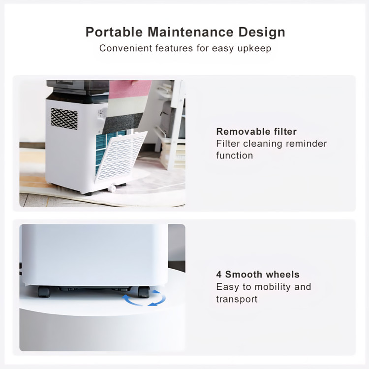 ✅ طراحی عالی: شامل یک مخزن آب نصبشده در بالا که به راحتی قابل جدا شدن است، یک دسته و چهار چرخ کوچک برای جابجایی آسان، بسیار قابل حمل. صفحه نمایش دیجیتال شما را از سطح رطوبت ایدهآل اتاقتان مطلع میکند. فیلتر قابل جدا شدن تضمین میکند که هوای اتاق شما تمیز و تازه باقی بماند. طراحی فوقالعاده بیصدا، کمتر از ۴۶ دسیبل، به شما امکان میدهد به راحتی بخوابید یا کار کنید. علاوه بر این، مبرد R290 سازگار با محیط زیست، آن را به انتخابی سازگار با محیط زیست تبدیل میکند.