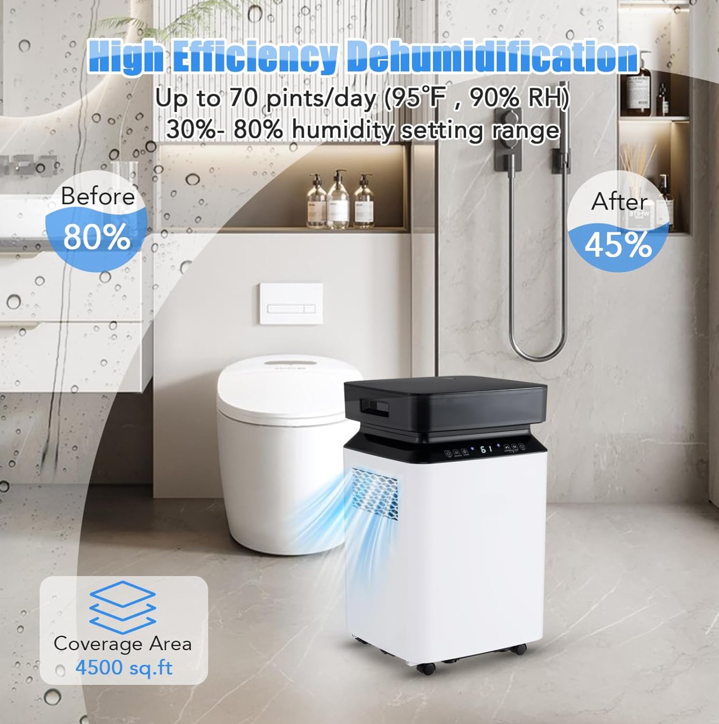 ✅️ رطوبتگیر هوشمند: به گونهای طراحی شده است که پس از تنظیم سطح رطوبت دلخواه شما، به طور خودکار کار کند. پس از رسیدن به سطح تعیینشده، رطوبتگیر هوا برای صرفهجویی در مصرف انرژی متوقف میشود. حالت رطوبتگیری مداوم، رطوبت را با توجه به شرایط فعلی اتاق تنظیم میکند. علاوه بر این، میتوانید از طریق کنترلهای آسان، ویژگی شروع یا خاموش شدن زمانبندیشده را تنظیم کنید.
