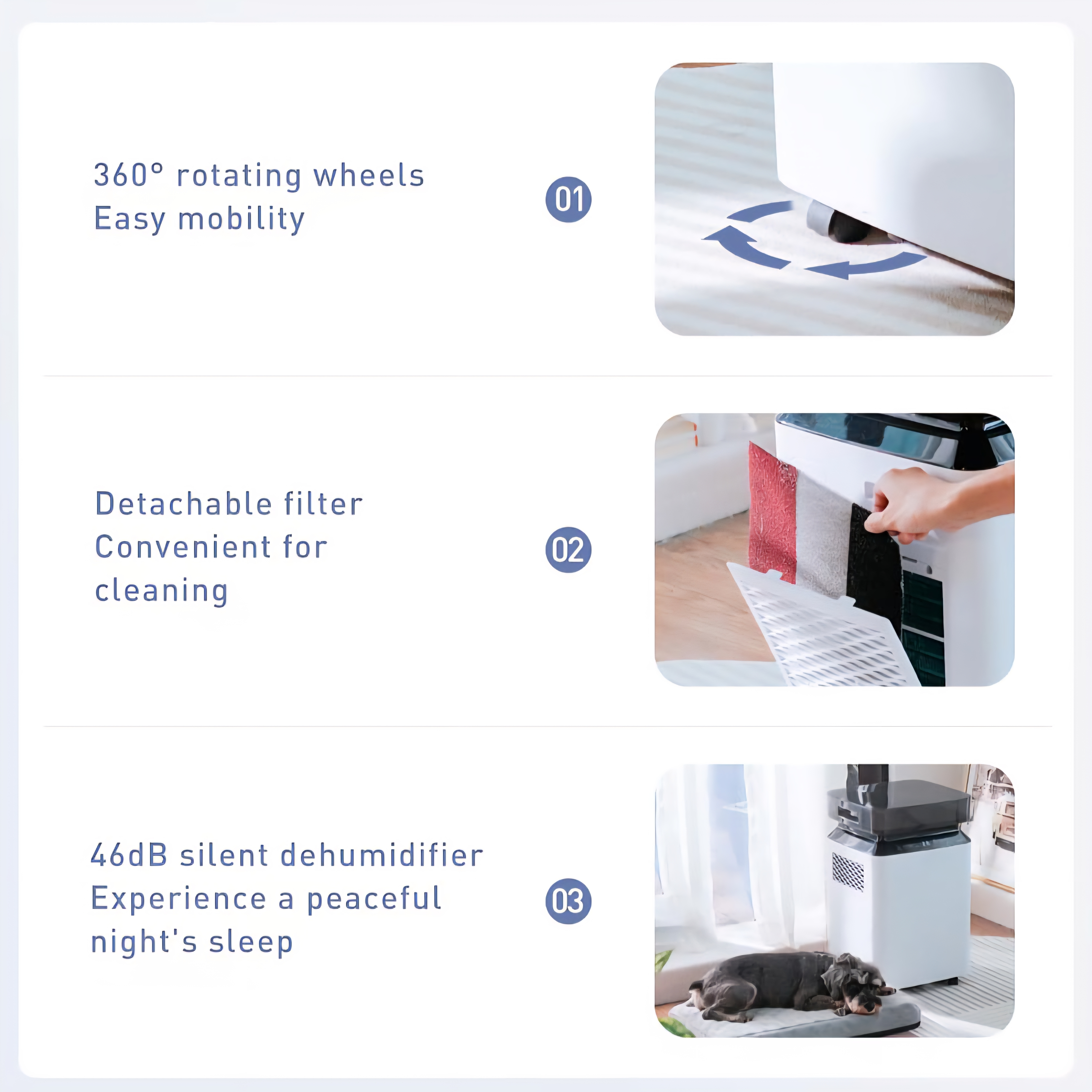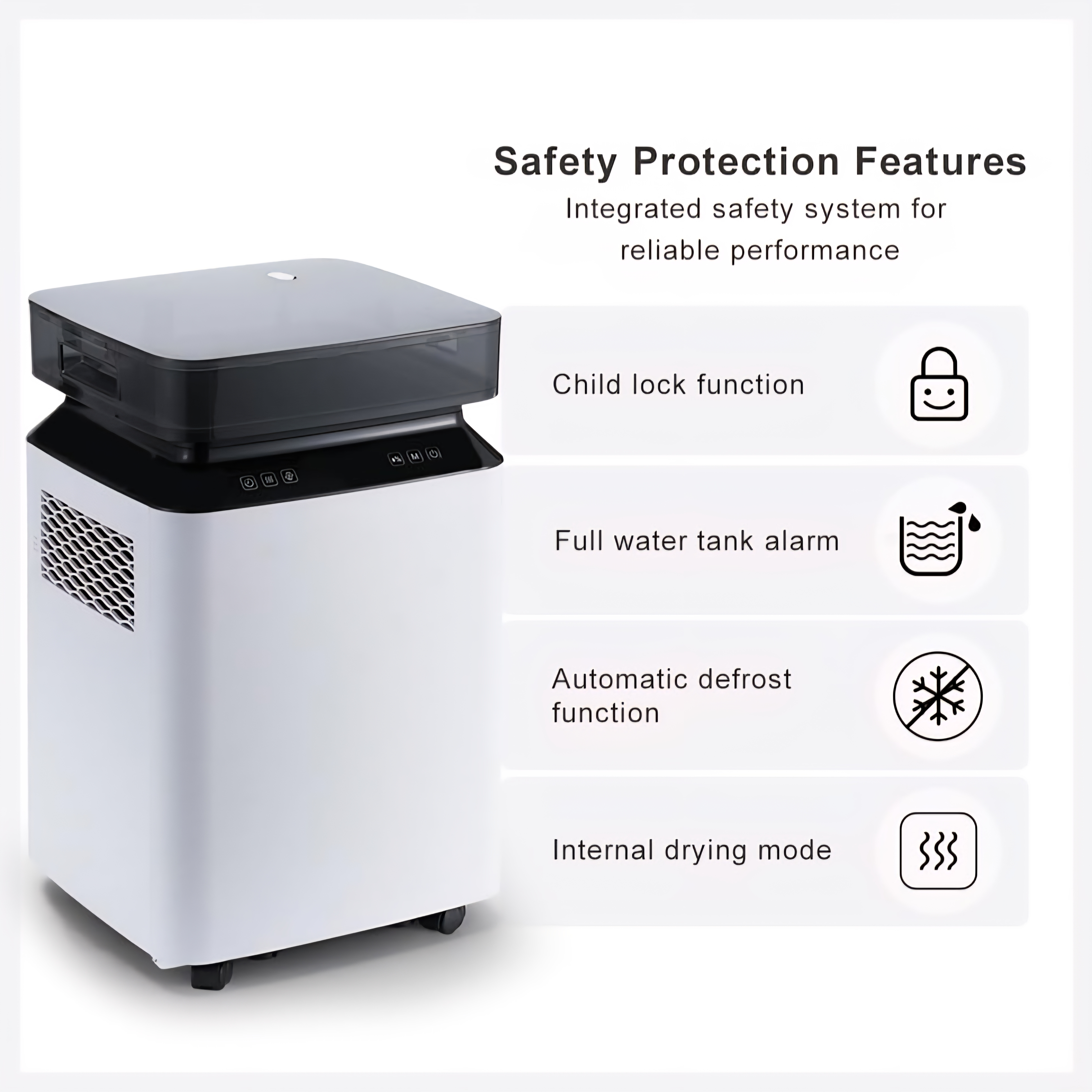 ✅ طراحی عالی: شامل یک مخزن آب نصبشده در بالا که به راحتی قابل جدا شدن است، یک دسته و چهار چرخ کوچک برای جابجایی آسان، بسیار قابل حمل. صفحه نمایش دیجیتال شما را از سطح رطوبت ایدهآل اتاقتان مطلع میکند. فیلتر قابل جدا شدن تضمین میکند که هوای اتاق شما تمیز و تازه باقی بماند. طراحی فوقالعاده بیصدا، کمتر از ۴۶ دسیبل، به شما امکان میدهد به راحتی بخوابید یا کار کنید. علاوه بر این، مبرد R290 سازگار با محیط زیست، آن را به انتخابی سازگار با محیط زیست تبدیل میکند.