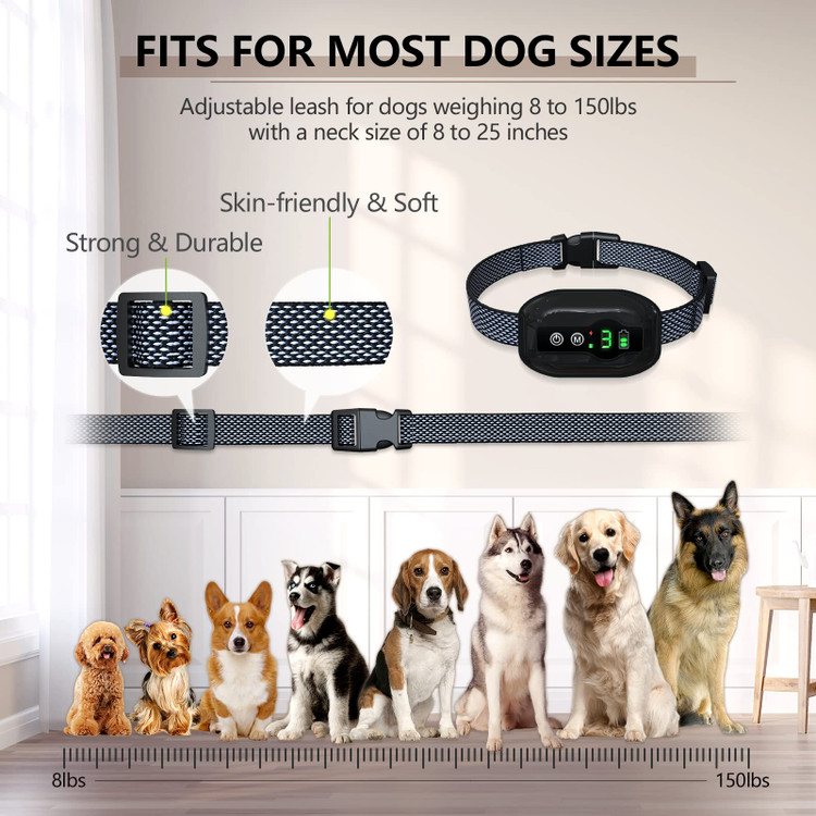 🐶 【سبکتر و طراحی انسانیتر】 قلادههای بدون پارس برای سگها برای تولههای 5 تا 150 پوندی مناسب است. قلاده پهن سگ تا 25.0 اینچ قابل تنظیم است. مناسب برای سگ های متوسط، سگ های کوچک و سگ های بزرگ، اجازه دهید سگ آن را بدون فشار بپوشد