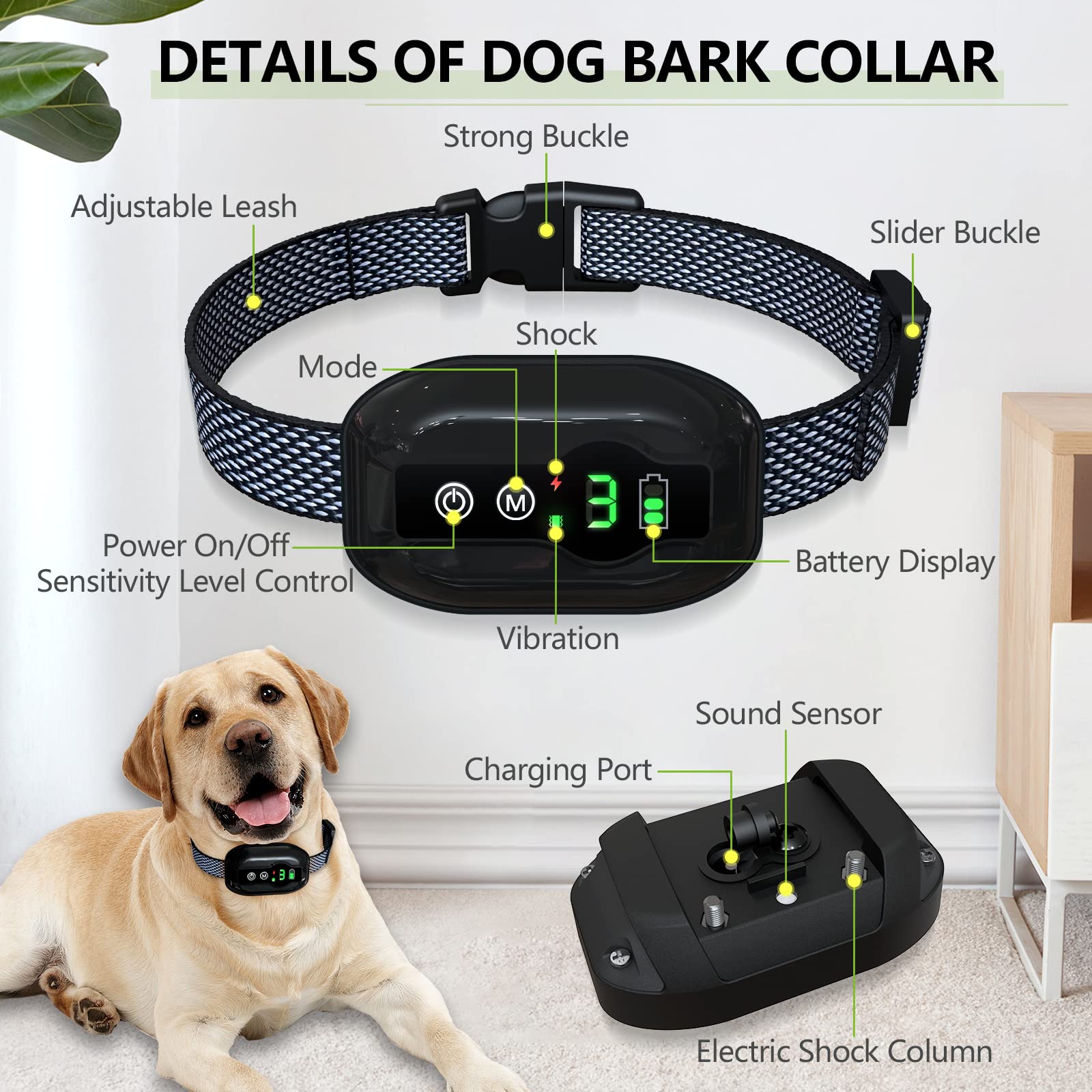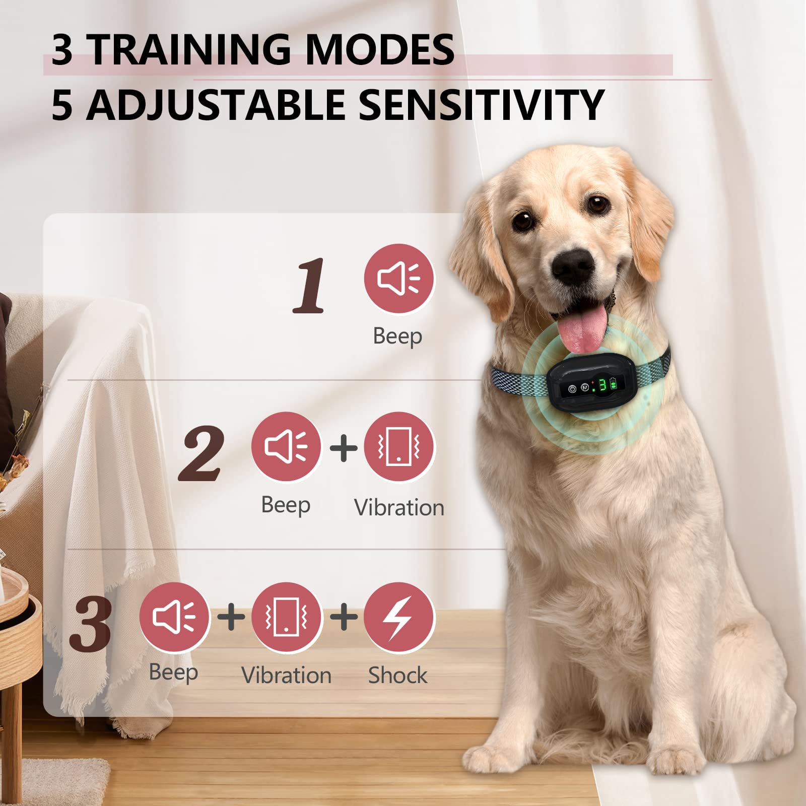 🐶 【هوشمند و حساس】 قلاده پارس ارتعاشی سگ دارای یک میکروفون هوشمند است که فقط به پارس بی نظیر سگ شما پاسخ می دهد. قلاده ضد پارس سگ دارای 5 سطح حساسیت است که می توان آن را متناسب با صدای محیط تنظیم کرد، سطح 5 حساس ترین و سطح 1 کمترین میزان حساسیت را دارد.