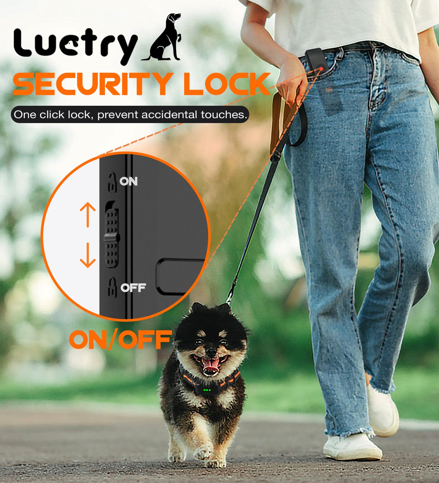 🦮 【طراحی قفل ایمنی】 کنترل از راه دور یقه ضد پارس مجهز به قفل ایمنی است که با یک کلیک قفل می شود تا از لمس تصادفی جلوگیری شود. این بدان معناست که می توانید با خیال راحت ریموت را در جیب یا کیف خود حمل کنید بدون اینکه نگران لمس و کارکردن تصادفی آن باشید. مناسب برای حمل کنترل از راه دور زمانی که نیاز به تمرین در فضای باز دارید، مانند هنگام دویدن.