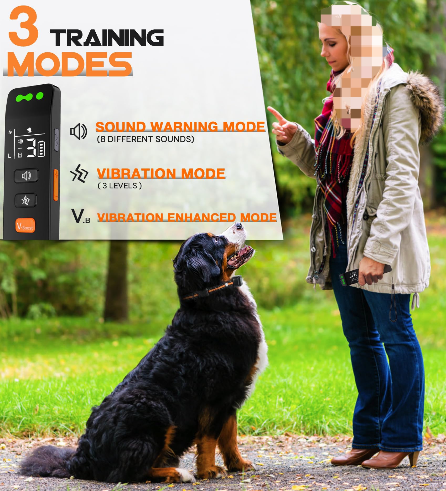 🦮【قلاده آموزش سگ با کنترل از راه دور】 قلاده 3 حالت آموزش ایمنی را ارائه می دهد: حالت هشدار صوتی (8 صدای مختلف)، حالت لرزش (3 سطح) و حالت تقویت ارتعاش. محدوده کنترل از راه دور قلاده سگ تا 3300 فوت است، شما می توانید سگ خود را در فضای باز یا داخل خانه، مانند پارک، ساحل یا در خانه آموزش دهید. تمام حالتهای آموزشی آزمایش شدهاند تا هیچ آسیبی نداشته باشند و به اندازه کافی قوی هستند که سگ شما را آموزش دهند.