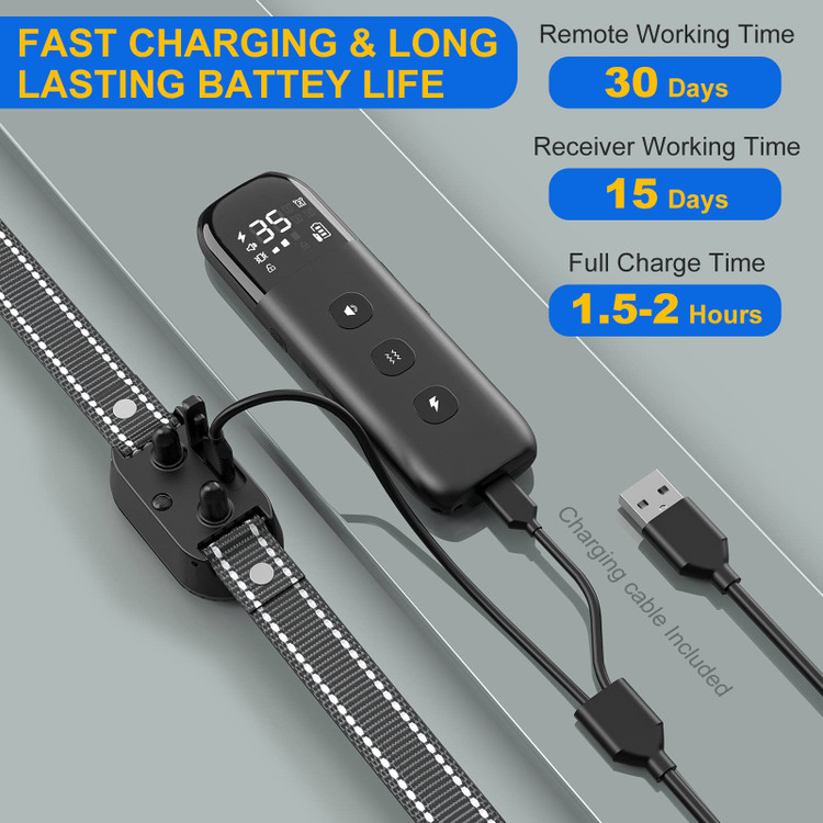 🐶 【شارژ سریع و عمر باتری طولانی】 قلاده پوست سگ با کنترل از راه دور از فناوری باتری لیتیوم استفاده می کند که عمر باتری طولانی دارد، قلاده سگ می تواند تا 35 روز در حالت آماده به کار و 45 روز در کنترل از راه دور دوام بیاورد، زمان شارژ کامل 2 ساعت است.
