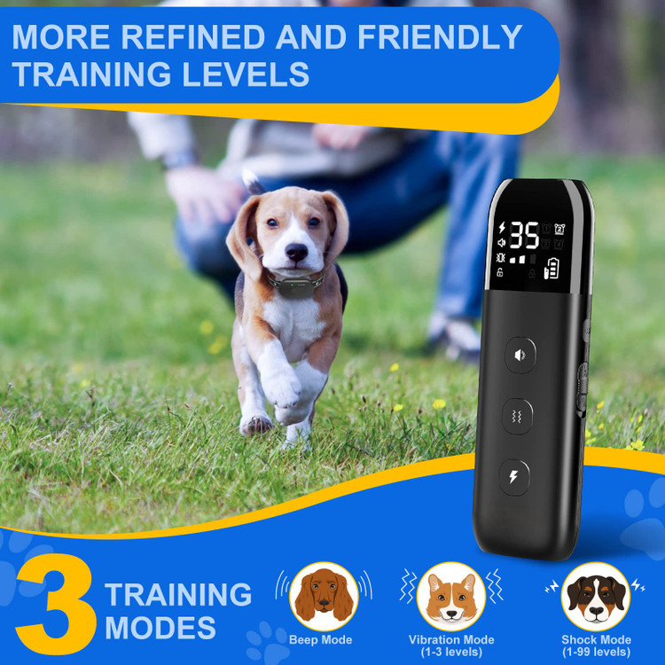 🐶 کنترل از راه دور】 3 حالت ایمن: بوق، لرزش (سطح 1-3)، شوک الکتریکی (سطح 1-99)، عملکرد شوک الکتریکی ارتقا یافته است و دیگر فقط 1-16 سطح قابل تنظیم نیست، می توانید سطح مناسبی را برای حیوان خانگی خود تنظیم کنید که می تواند رفتار بد سگ را بدون آسیب رساندن به آن متوقف کند.