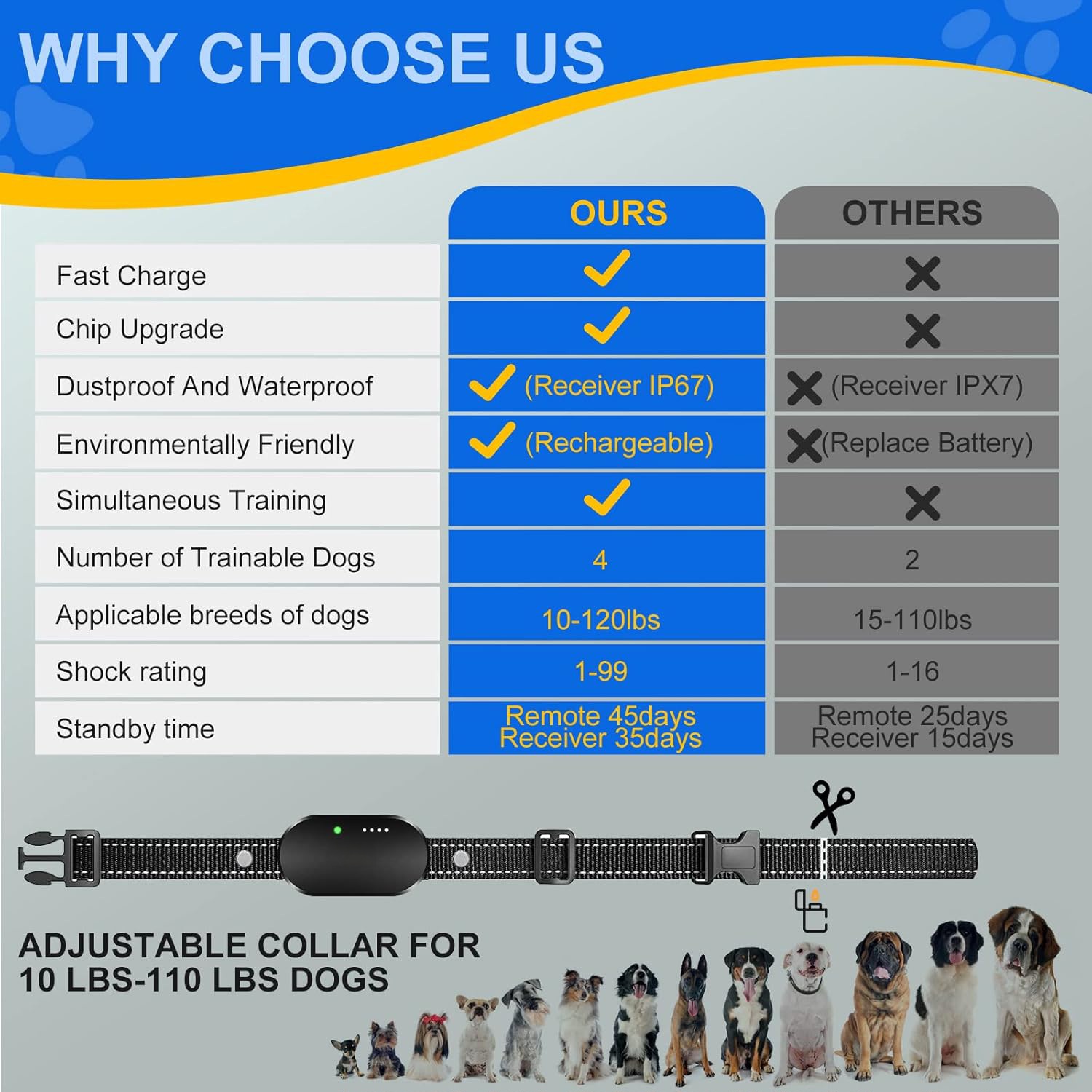 🐶 کنترل از راه دور】 3 حالت ایمن: بوق، لرزش (سطح 1-3)، شوک الکتریکی (سطح 1-99)، عملکرد شوک الکتریکی ارتقا یافته است و دیگر فقط 1-16 سطح قابل تنظیم نیست، می توانید سطح مناسبی را برای حیوان خانگی خود تنظیم کنید که می تواند رفتار بد سگ را بدون آسیب رساندن به آن متوقف کند.
