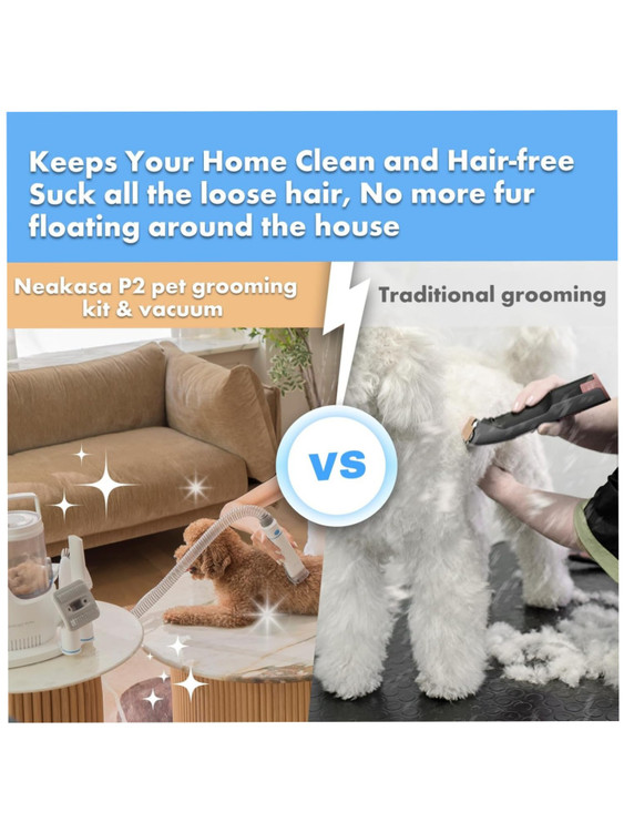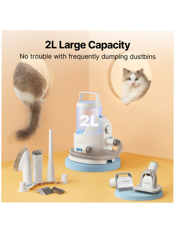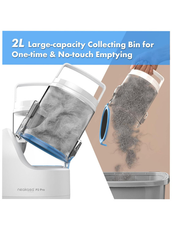 نظافت آسان و تمیز نگه داشتن خانه: کیت نظافت سگ Neakasa P2 Pro مجهز به عملکرد مکش منحصر به فرد 15000 پا است. در حین نظافت یا کوتاه کردن، موهای ریخته شده به داخل یک سطل زباله بزرگ 2 لیتری مکش میشوند. پس از اتمام نظافت، کافیست درب را باز کرده و ظرف را در عرض چند ثانیه خالی کنید. این کار از پخش شدن موی حیوانات خانگی در خانه شما جلوگیری میکند و خانه شما را برای شما و دوست پشمالویتان سالم و بهداشتی نگه میدارد.