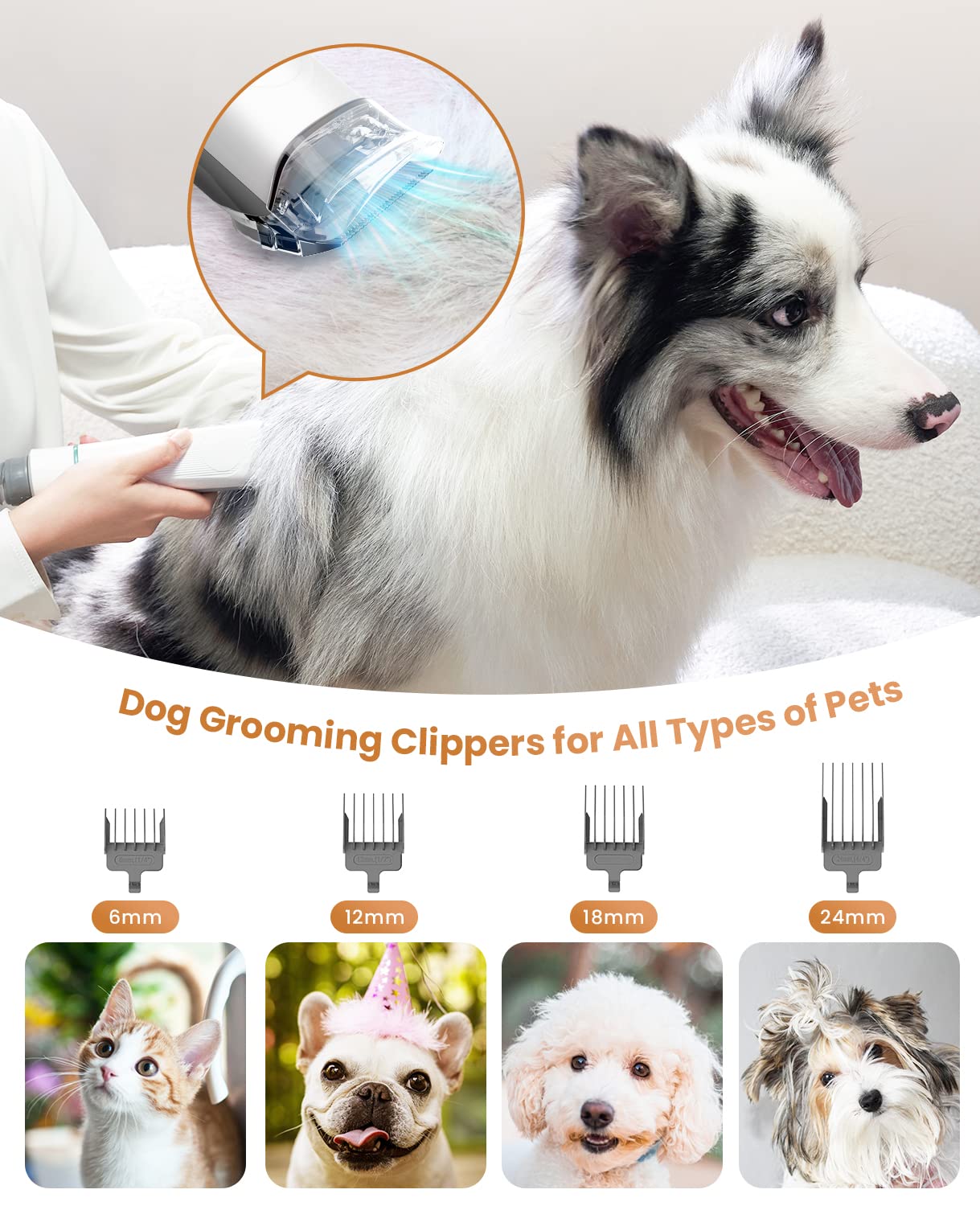 🐺 موبر حیوانات برقی با ضمائم 5 شانه: برای سازگاری کامل با حیوانات خانگی مختلف، ما 5 شانه گیره قابل تنظیم (3 میلی متر/6 میلی متر/12 میلی متر/18 میلی متر/24 میلی متر) را در اختیار شما قرار می دهیم که برای کوتاه کردن موهای با طول های مختلف مناسب است. فرقی نمیکند حیوان خانگی شما یک گربه مو بلند بداخلاق باشد یا یک سگ پشمالوی فرفری زیبا، میتوانید مدل موهای او را مطابق با زیباییشناسی خود سفارشی کنید، پس بیایید شروع کنیم.