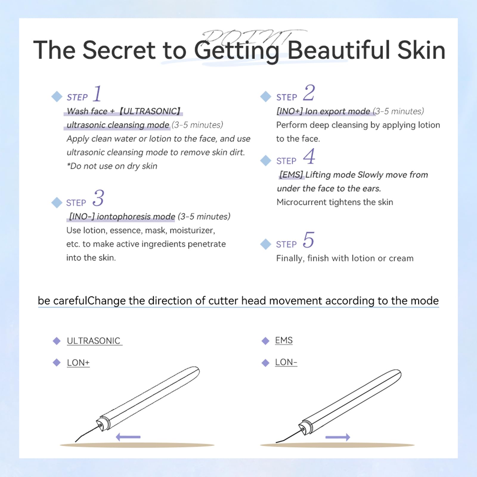 💖 تمیز کردن عمیق: حالت یون + می تواند کراتین قدیمی را نرم کند، ملانین و جوش های سرسیاه را تجزیه کند. منافذ خود را کاملاً تمیز کنید، پیری لایه شاخی، چربی مرده پوست و گرد و غبار آرایش و غیره را پاک کنید. پوست خود را شفافتر و صافتر نشان دهید. تغذیه یونی "یون" از قدرت یون ها و ارتعاش التراسونیک برای نفوذ به مواد فعال سرم ها و ماسک ها به عمق پوست استفاده می کند. اثر محصولات مراقبتی مرسوم به طور قابل توجهی بهبود یافته است