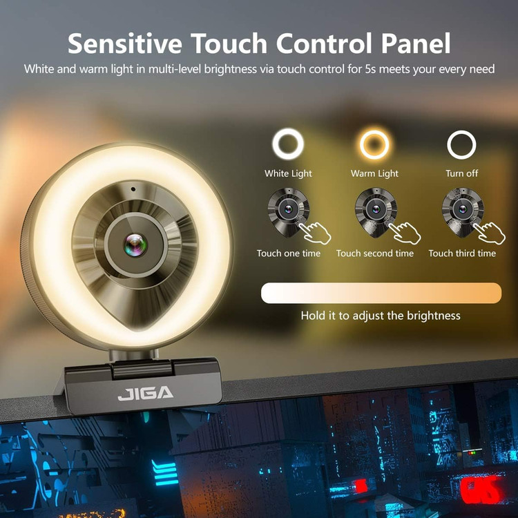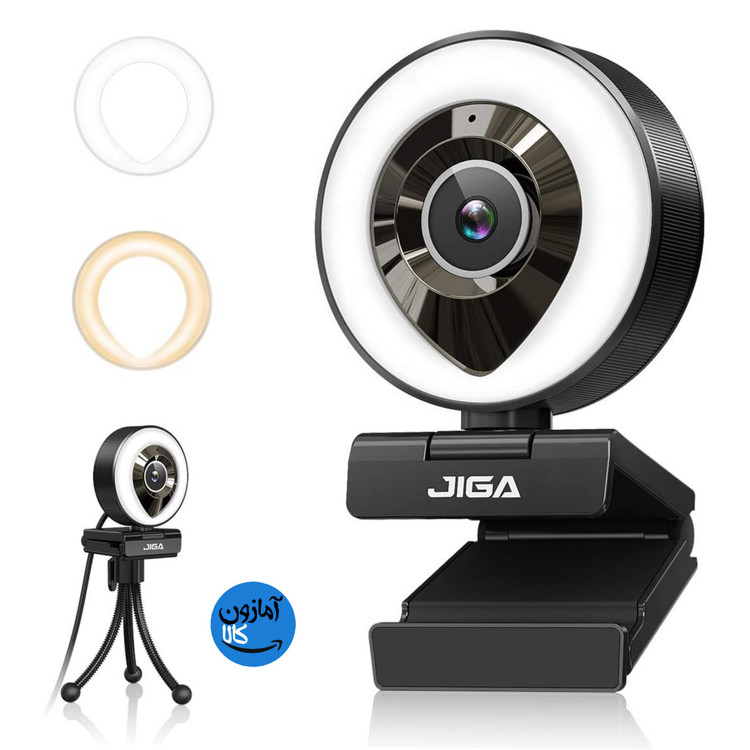 وب کم JIGA Streaming با میکروفون دوگانه، دوربین وب پرو با نور مناسب و قابلیت تنظیم 1080P، سه پایه