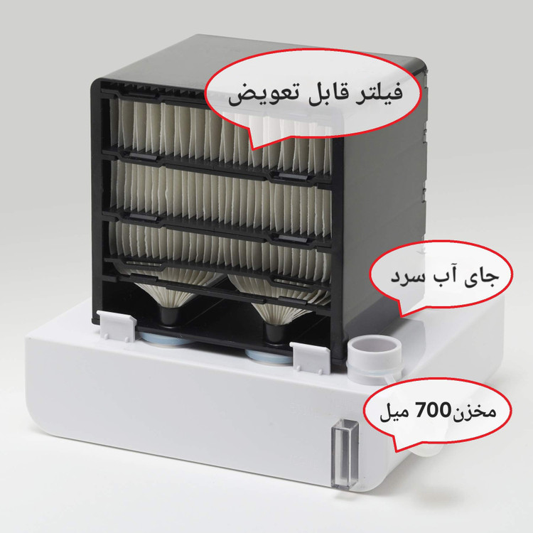 - برای خنکسازی و رطوبترسانی، با آب خالص خنک میشود - بدون مواد شیمیایی - 3 سطح سرعت.