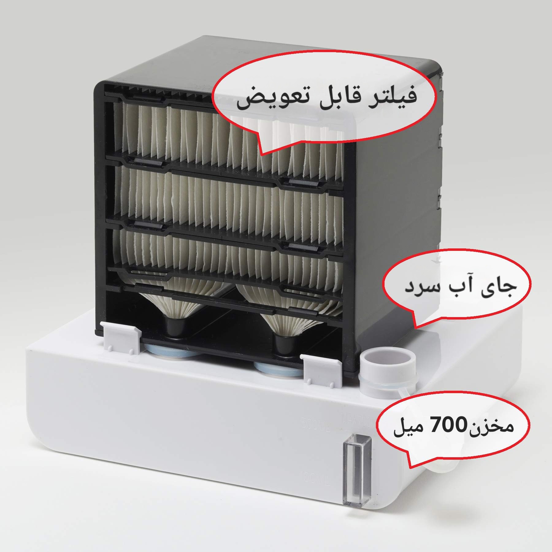 - برای خنکسازی و رطوبترسانی، با آب خالص خنک میشود - بدون مواد شیمیایی - 3 سطح سرعت.