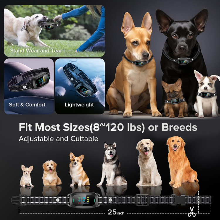 🐶 مناسب بیشتر سگ ها: قلاده پوست سگ ما برای سگ هایی با وزن 8 تا 120 پوند با سایز گردن 8 تا 25 اینچ قابل تنظیم است، قلاده ضد پارس قابل تنظیم برای اندازه سگ ها، بنابراین می توانید با رشد سگ خود از آن استفاده کنید.