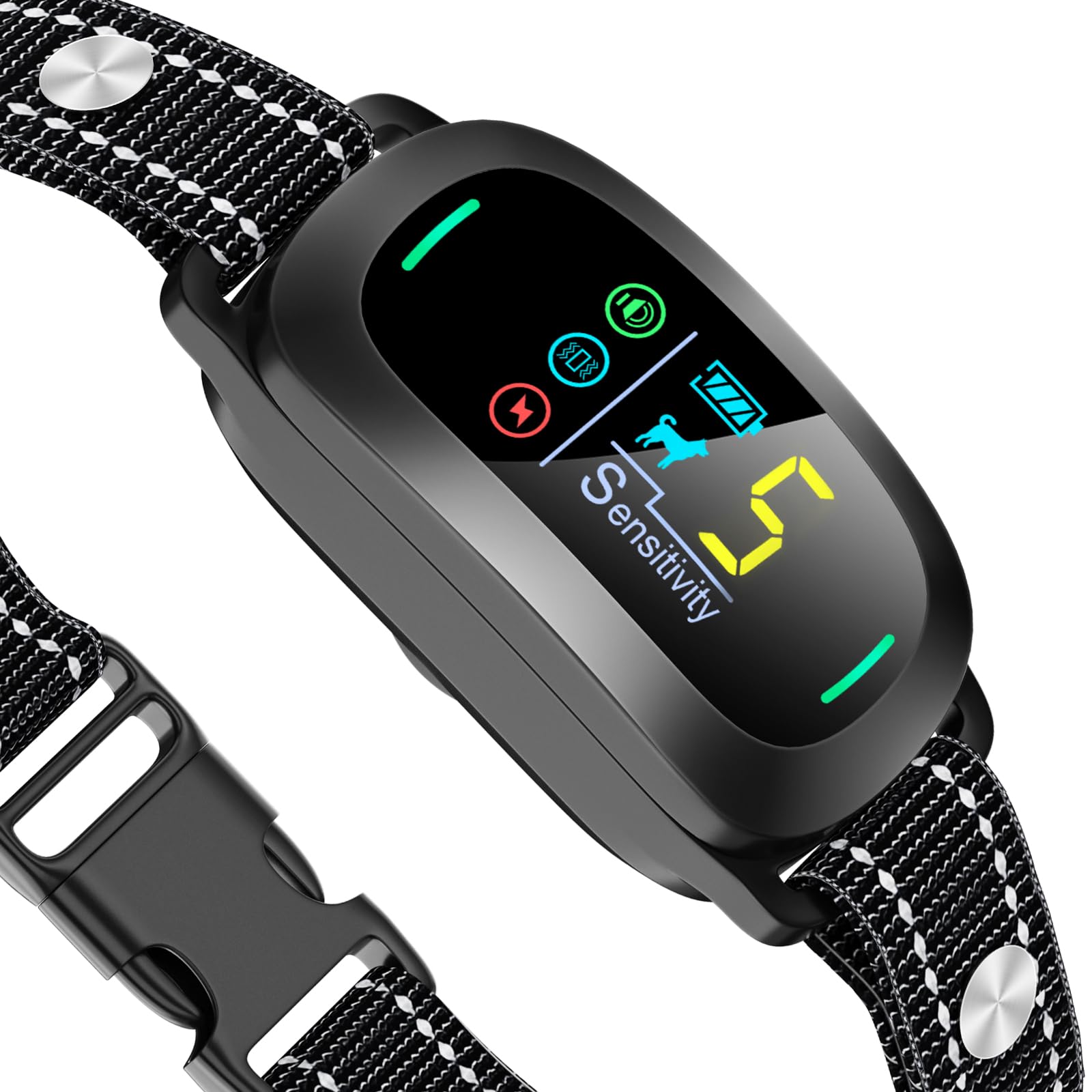 🐶 حالت محافظت: صفحه نمایش رنگی هوشمند به وضوح وضعیت کار و سطح قدرت را نشان می دهد. اگر قلاده پارس سگ 6 بار به طور مداوم فعال شده باشد. قلاده پوست به مدت 30 ثانیه از کار می افتد (نمایشگر دیجیتال به "8" تغییر می کند)، از سگ خود در برابر تنبیه غیر ضروری محافظت کنید.