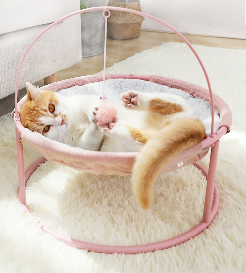 تخت نرم مخملی گربه با توپ آویزان برای گربه، سگ های کوچک (صورتی )