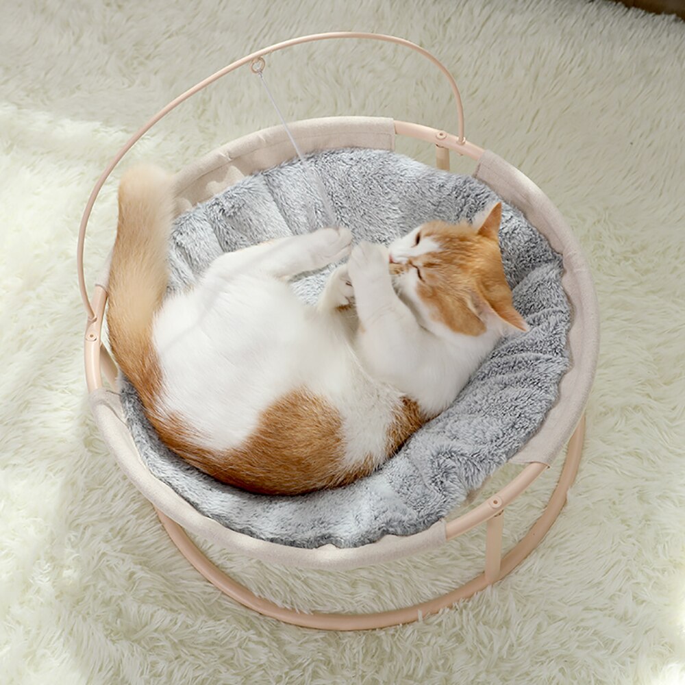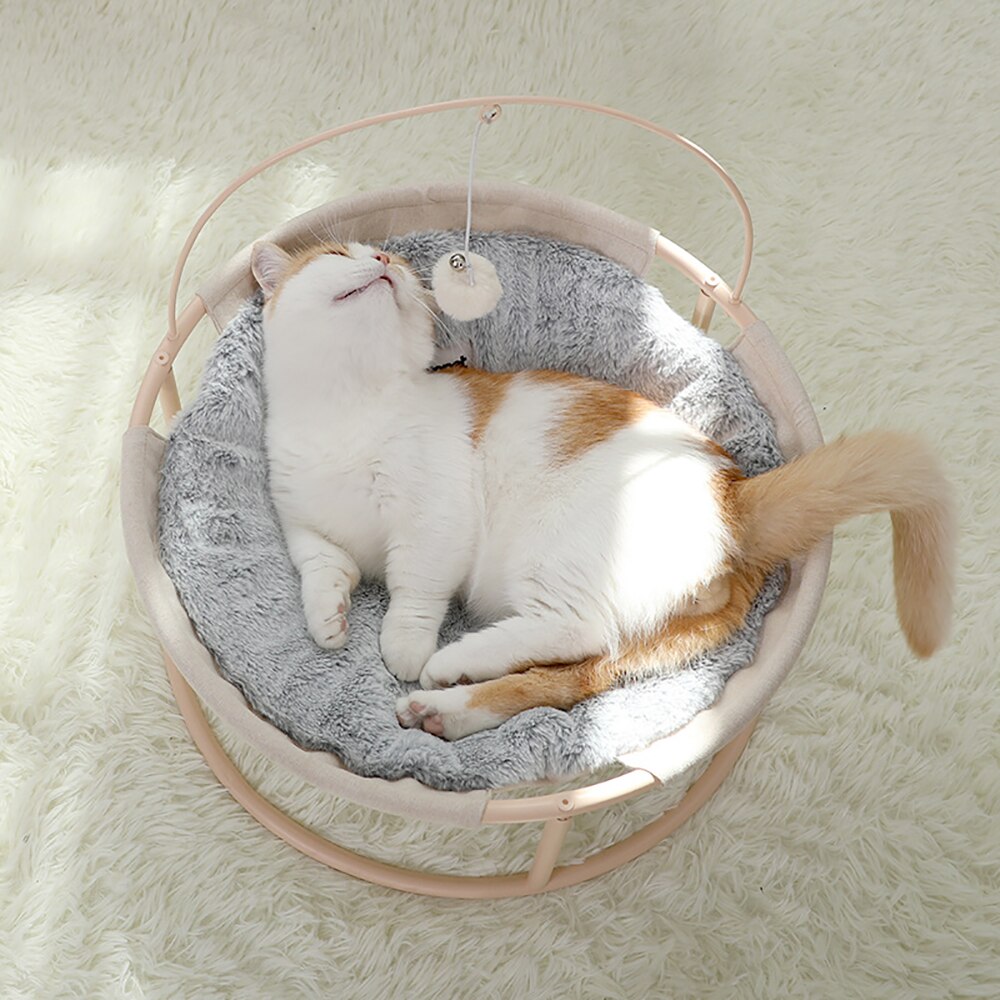 🐈 استراحت و بازی 2 در 1: توپ اسباب بازی مورد علاقه گربه را با دقت در بالای تخت گربه قرار دهید تا نه تنها یک مکان راحت برای خواب و آرامش، بلکه یک زمین بازی نیز فراهم کند. تنها با دراز کشیدن روی این بانوج، حیوانات خانگی شایان ستایش شما می توانند از تفریحات زیادی لذت ببرند.