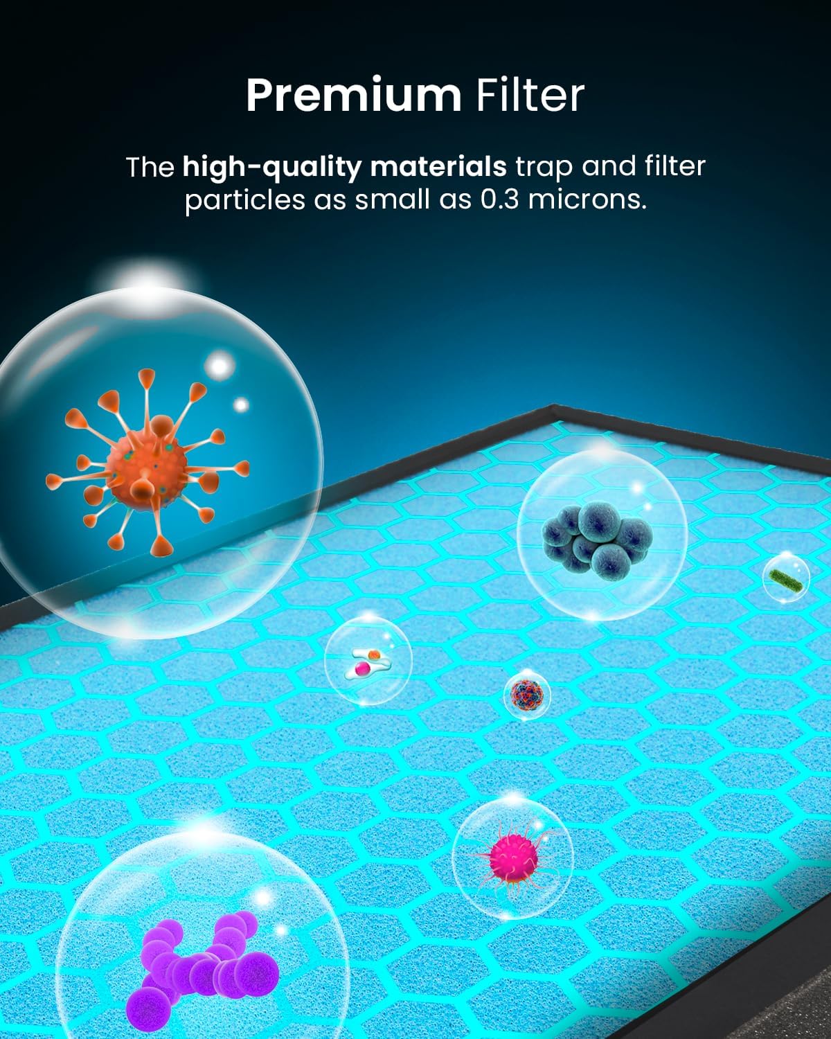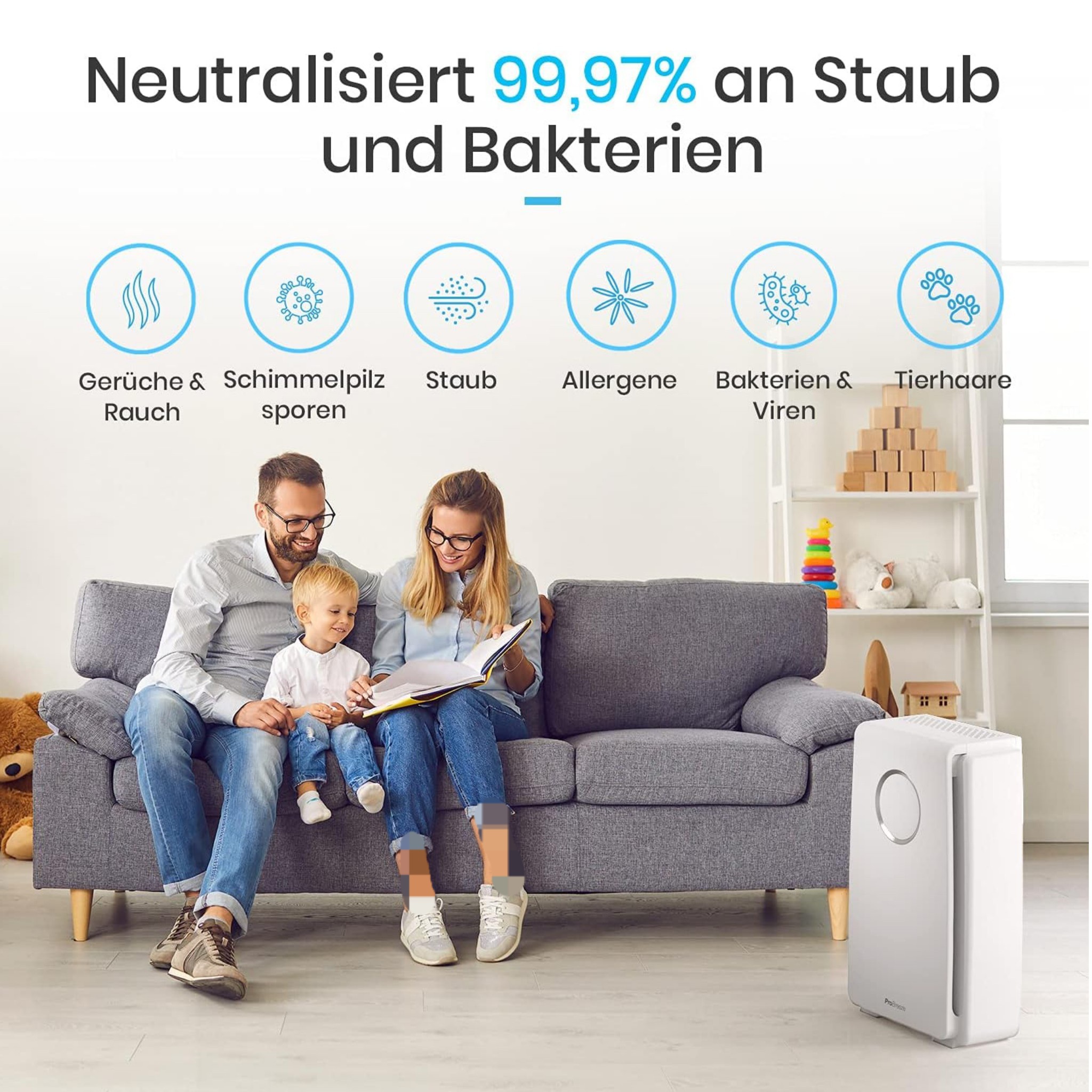 🍀 دستگاه تصفیه هوای ۵ کاره: دستگاه تصفیه هوای Pro Preeze به لطف سیستم فیلتراسیون چند لایه خود با پیش فیلتر ریز، فیلتر هوای HEPA واقعی، فیلتر کربن فعال و کاتالیزور خنک کننده، تا ۹۹.۹۷٪ از ذرات معلق در هوا، گرد و غبار، گرده، دود، بوهای نامطبوع، کپک و شوره حیوانات خانگی را جذب میکند. این دستگاه تصفیه هوا دارای نرخ CADR بیش از ۲۱۸ متر مکعب در ساعت