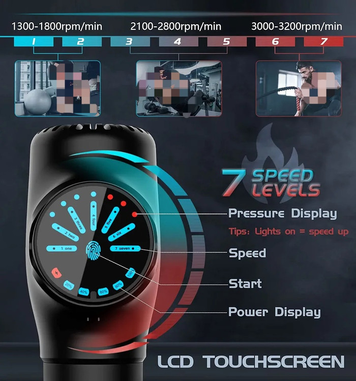 🍀 تفنگ ماساژ Musle، ۷ سطح سرعت و ۱۵ سر ماساژ، مناسب برای نیازهای مختلف بدن، به طور موثر درد کمر، گردن، بازوها، پاها و عضلات را تسکین میدهد.