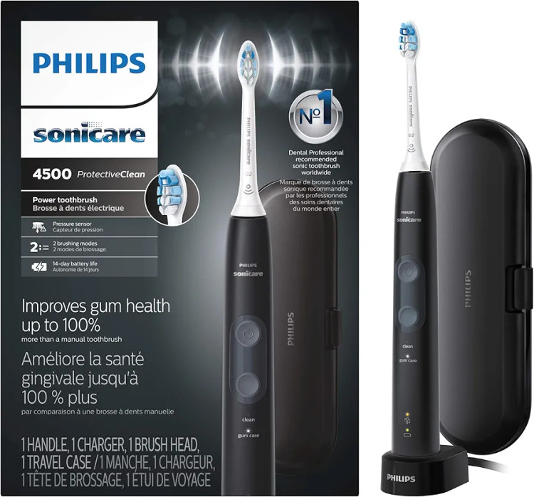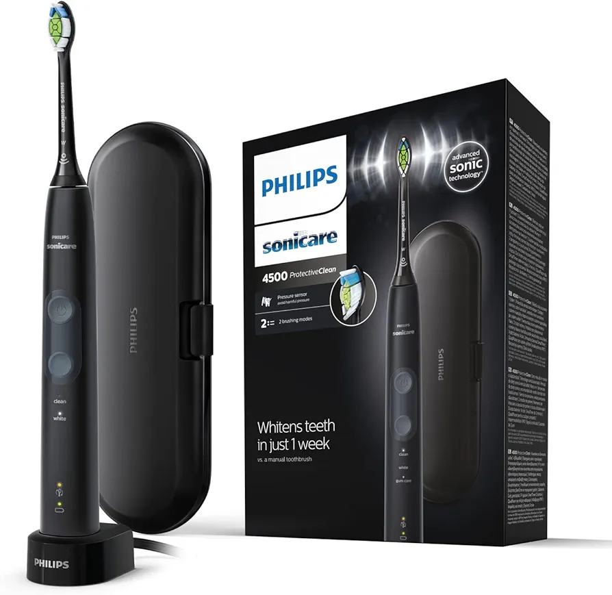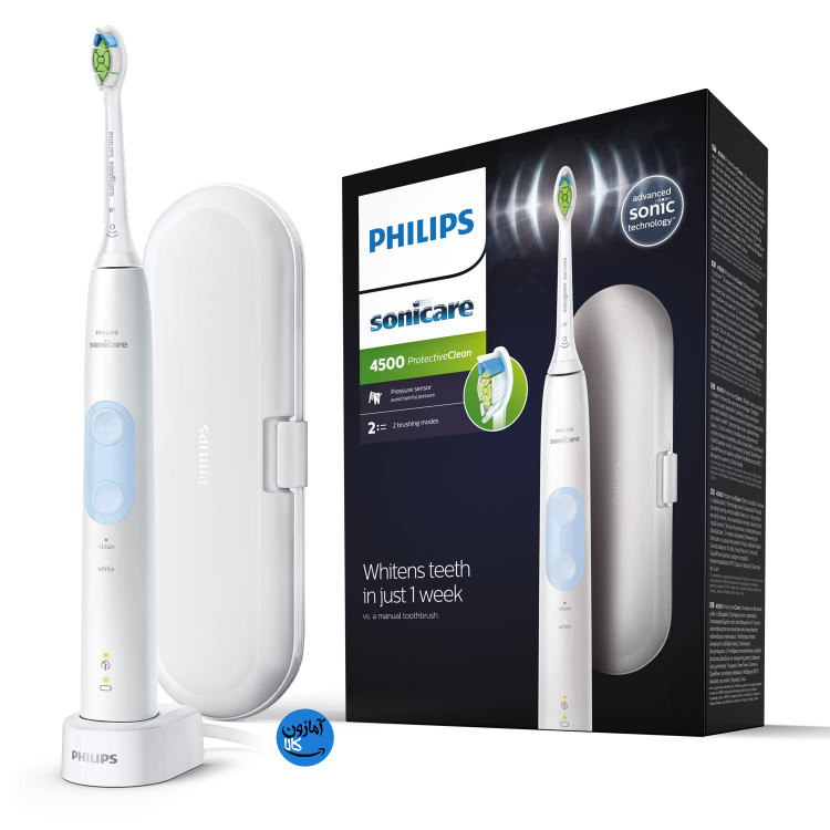 🦷 محتویات جعبه: ۱ مسواک برقی سونیک Philips Sonicare Protective Clean 4500 و 2 عدد سری مسواک