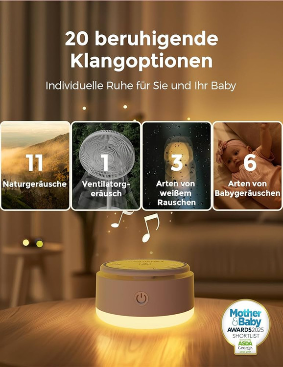 👶 20 صدای آرامشبخش: با 20 صدای آرامشبخش خواب، از جمله نویز سفید، نویز صورتی، نویز قهوهای، نویز سبز، صدای پنکه و صداهای طبیعت مانند امواج دریا، باران، صدای ترک خوردن آتش، صدای پرنده، صدای کبابپز و موسیقی مدیتیشن، خواب شبانه آرام و رفع نیازهای آرامش روزانه را تضمین میکند.