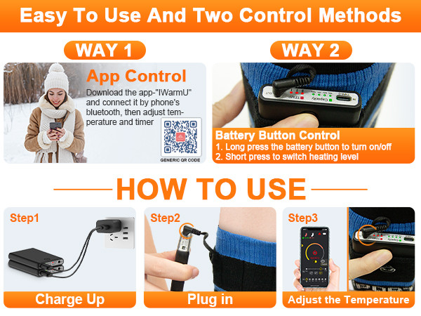 🔥【باتری 6000 میلیآمپر ساعت و 9 ساعت زمان کار】این جورابهای گرمکننده مجهز به یک باتری قابل شارژ لیتیوم-یونی با ظرفیت بالا 6000 میلیآمپر ساعت هستند که میتواند 5 تا 9 ساعت دوام بیاورد و در برابر شارژ، دشارژ و اتصال کوتاه محافظت میشود. طراحی نازک و منحنی آن تضمین میکند که باتری کاملاً در جورابها جا میگیرد و راحتی را هنگام پوشیدن افزایش میدهد. حتی اگر تلفن همراه شما در نزدیکی نباشد، میتوانید به راحتی جورابها را با استفاده از دکمههای بزرگ واقع در کنار باتری روشن/خاموش کنید یا دما را تنظیم کنید. نشانگرهای واضح قدرت و دما شما را از وضعیت باتری مطلع نگه میدارند. توجه: لطفاً قبل از استفاده، هر دو باتری را کاملاً شارژ کنید، که معمولاً ۳.۵ تا ۵ ساعت طول میکشد.