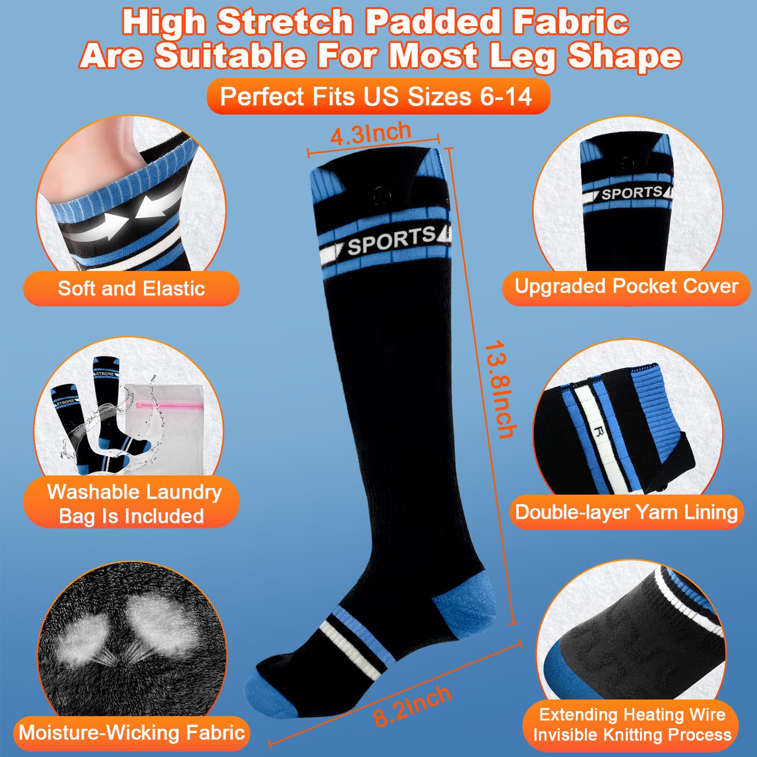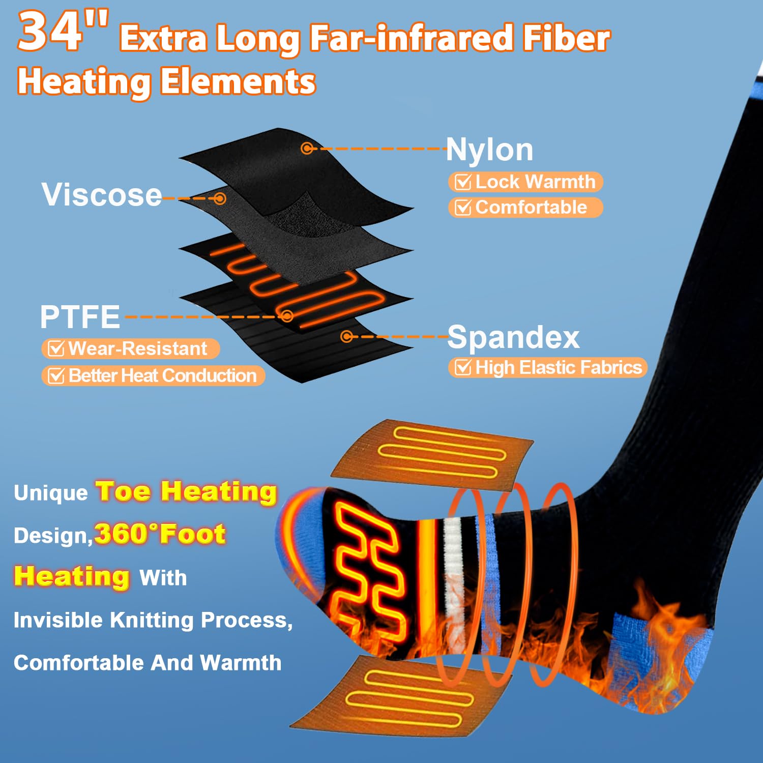 🔥【فناوری انحصاری گرم کردن انگشتان پا و گرمایش فراگیر ۳۶۰ درجه】 جورابهای گرم شونده زنانه ما از پارچههای با کشش بالا ساخته شدهاند که نرم، قابل تنفس، سریع خشک و الاستیک هستند. سیم گرمایشی بسیار بلند ۳۴ اینچی، یک منطقه گرمایش ۳۶۰ درجه اطراف ایجاد میکند و طراحی نوآورانه سیستم گرمایش انگشتان پا، گرمای ۳۶۰ درجه را برای کل پای شما تضمین میکند. فرآیند بافت نامرئی، راحتی و بدون احساس جسم خارجی را تضمین میکند. مجهز به مواد رسانای حرارتی ایمنی برتر و پارچه ضخیمتر، گرمایش یکنواخت است و گرما به طور کامل کل پای شما را در بر میگیرد.