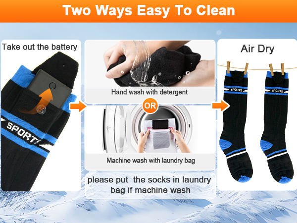 🔥【قابل شستشو با ماشین لباسشویی و دست و مقاوم در برابر رنگپریدگی】 این جورابهای گرم شونده زنانه را میتوان با ماشین لباسشویی یا دست شست و رنگپریده و پرزدار نمیشوند. فقط مطمئن شوید که قبل از شستشو باتریها را از جورابها خارج کنید. هنگام استفاده از ماشین لباسشویی، جورابها را قبل از قرار دادن در ماشین لباسشویی در یک کیسه لباسشویی قرار دهید. توجه: یک کیسه لباسشویی در جعبه جورابهای گرم شونده مردانه ما موجود است.