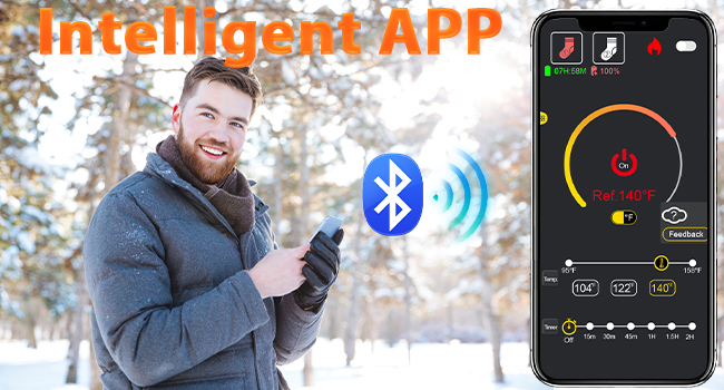 🔥【کنترل برنامه و کنترل باتری ارتقا یافته】 جورابهای VICEPLUS bas chauffant به یک برنامه تلفن همراه سفارشی مجهز شدهاند که به شما امکان میدهد تنظیمات دما و زمان را به راحتی و با دقت تنظیم کنید و به خدمات پس از فروش دسترسی داشته باشید. دیگر نیازی نیست در برف خم شوید و برای پیدا کردن دکمههای جورابهای برقی، شلوار خود را به زحمت بالا بکشید. دمای جورابهای گرم شونده مردانه را میتوان از طریق اپلیکیشن به طور دقیق روی هر دمایی بین ۹۵ تا ۱۵۸ درجه فارنهایت تنظیم کرد، که دارای یک تایمر است که میتواند برای ۶ دوره زمانی تنظیم شود: ۱۵ دقیقه، ۳۰ دقیقه، ۴۵ دقیقه، ۶۰ دقیقه، ۹۰ دقیقه، ۱۲۰ دقیقه