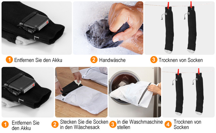 ✔ کنترل دمای قابل تنظیم در 3 سطح: جورابهای گرمکننده دارای 3 سطح تنظیمات کنترل گرما هستند که به شما امکان میدهد دمای دلخواه خود را تنظیم کنید. 3 چراغ LED تقریباً 60 درجه سانتیگراد (تا 6 ساعت)، 2 چراغ LED تقریباً 50 درجه سانتیگراد (تا 8 ساعت) و 1 چراغ LED تقریباً 40 درجه سانتیگراد (تا 10 ساعت) است.