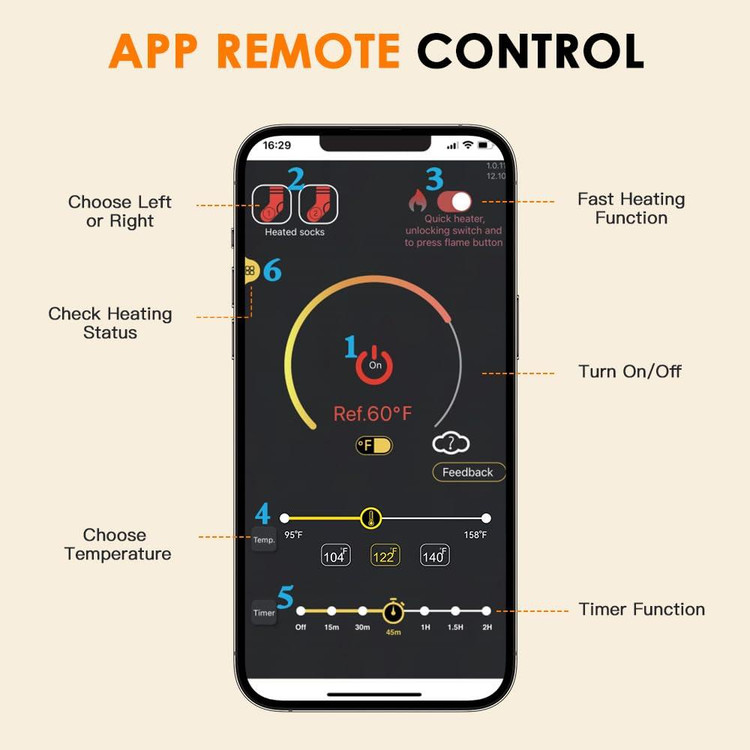 🔥 طراحی گرمایش: سیم گرمایش الکتریکی پنهان که در پارچه پراکنده شده و کل ناحیه انگشتان پا را میپوشاند، با جوراب ترکیب میشود و حضور آن را تقریباً نامحسوس میکند.