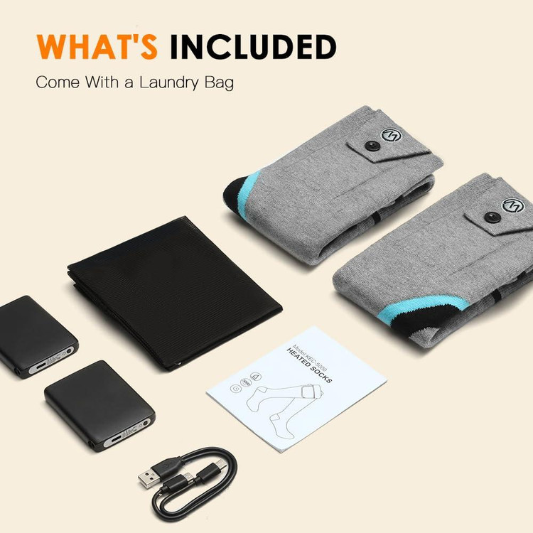 🔥 قابل شستشو با ماشین لباسشویی: لطفاً باتریها را خارج کرده و آنها را در کیسه لباسشویی برای شستشو با ماشین لباسشویی قرار دهید و قبل از استفاده مطمئن شوید که کابل شارژ یا جورابها کاملاً خشک هستند.