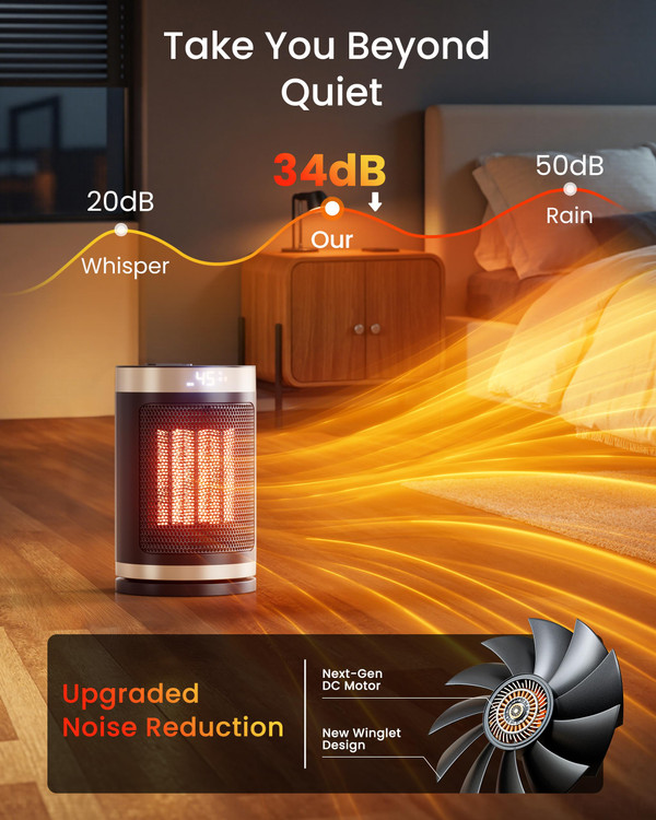 🔇دنج و آرام: دیگر نیازی به انتخاب بین سکوت یا گرما نیست. این بخاری با صدای بسیار کم، تا ۴۰ دسیبل، کار میکند و محیطی آرام برای خواب، کار و استراحت فراهم میکند. طراحی متفکرانه آن همچنین شامل ویژگیهایی مانند رابط کاربری لمسی و کنترل از راه دور برای راحتی شما است.