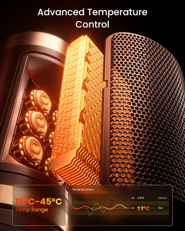 🔥گرمایش فوری و کارآمد: بخاری برقی ما با بهرهگیری از فناوری پیشرفته گرمایش سرامیکی PTC و موتور فن DC پرسرعت، گرمایش سریع 2S و نوسان گسترده 90 درجه را فراهم میکند و راحتی سریع را در اتاقهایی تا 200 فوت مربع تضمین میکند. مناسب برای فضاهای مختلف از جمله دفتر و اتاق خواب.
