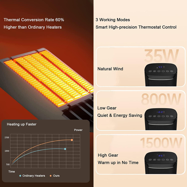 🔥 【نمایشگر LED و نویز کم】: بخاری از طریق صفحه نمایش لمسی کار می کند و صفحه نمایش LED مقدار دما را نشان می دهد. صدای کم، بیش از 40 دسی بل مزاحم کار و خواب شما نمی شود.