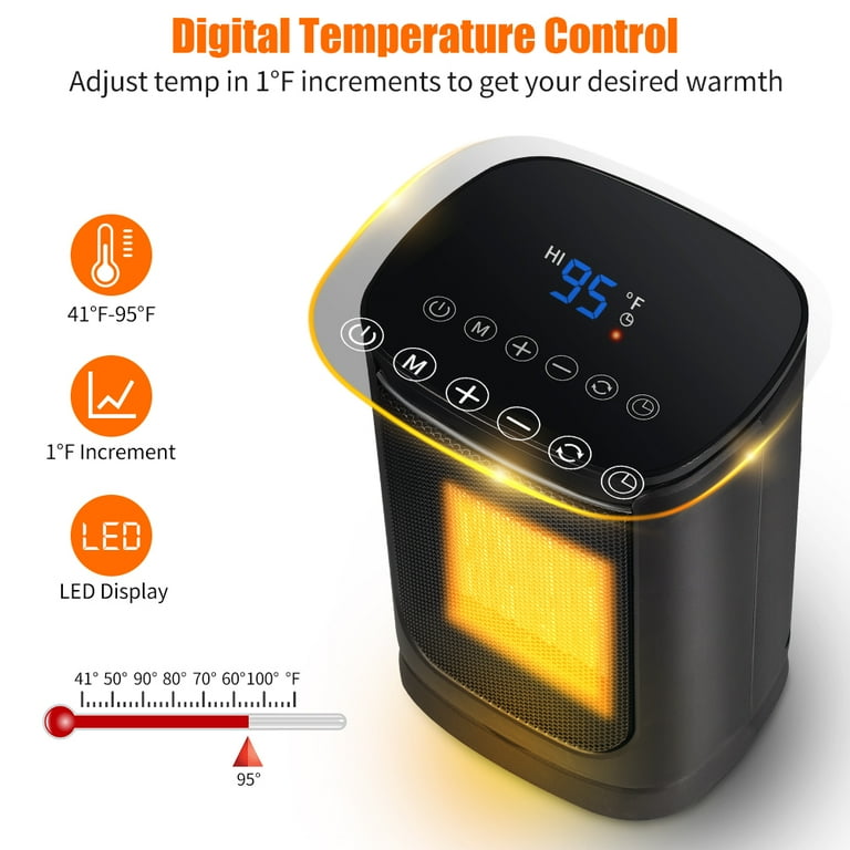 🔥 【نمایشگر LED و نویز کم】: بخاری از طریق صفحه نمایش لمسی کار می کند و صفحه نمایش LED مقدار دما را نشان می دهد. صدای کم، بیش از 40 دسی بل مزاحم کار و خواب شما نمی شود.