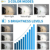 📚 منابع نور راحت: این لامپ رومیزی USB دارای 3 دمای رنگ (نور گرم، نور طبیعی و نور سفید) است، هر رنگ دارای 5 سطح روشنایی است، به طوری که گیره لامپ مطالعه 15 حالت روشنایی ایجاد می کند تا نیازهای مختلف نور شما را برآورده کند.