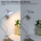 📚 عملکرد حافظه و خاموش شدن خودکار - هنگامی که دکمه پاور را به مدت 2-3 ثانیه فشار می دهید، چراغ آبی روی دکمه پاور چشمک می زند. سپس لامپ میز گیره می تواند پس از 1 دقیقه به طور خودکار خاموش شود. اگر منبع تغذیه را قطع نکنیم، چراغ مطالعه به طور خودکار حالت های روشنایی و رنگ آخرین استفاده را به خاطر می آورد.