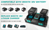 ✅️【سازگاری گسترده】 شارژر جایگزین DC18RD برند PENGJBATTER با شارژر باتری لیتیوم 18 ولت Makita DC18RD DC18RC DC18SF DC18RT DC18RA و غیره سازگار است. با باتری لیتیوم 18 ولت Makita BL1815، BL1820، BL1830، BL1840، BL1850، BL1860، BL1860B و غیره و باتری لیتیوم 14.4 ولت Makita BL1415، BL1420، BL1430، BL1440، BL1450، BL1460 و غیره سازگار است.