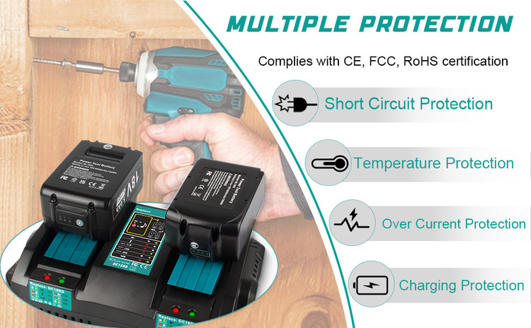 ✅️【ایمن و قابل اعتماد】شارژر جایگزین DC18RD 18V دارای گواهینامه CE / FCC / RoHS است، طراحی کانال خنککننده از شارژر در برابر گرمای بیش از حد، جریان بیش از حد، ولتاژ بیش از حد، شارژ بیش از حد و سایر خطرات محافظت میکند، عملکرد قدرتمند و پایدار اتلاف گرما، عمر شارژر و همچنین باتری را افزایش میدهد.