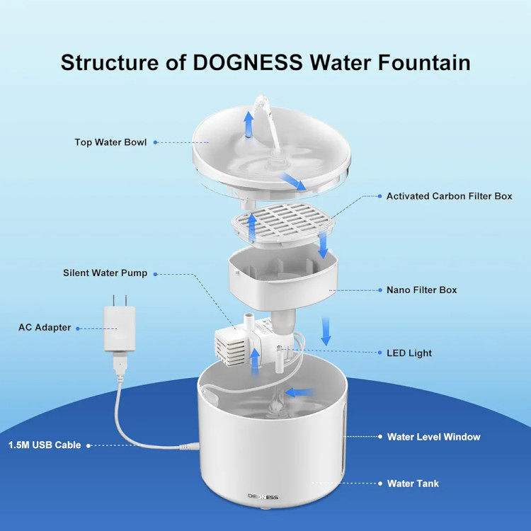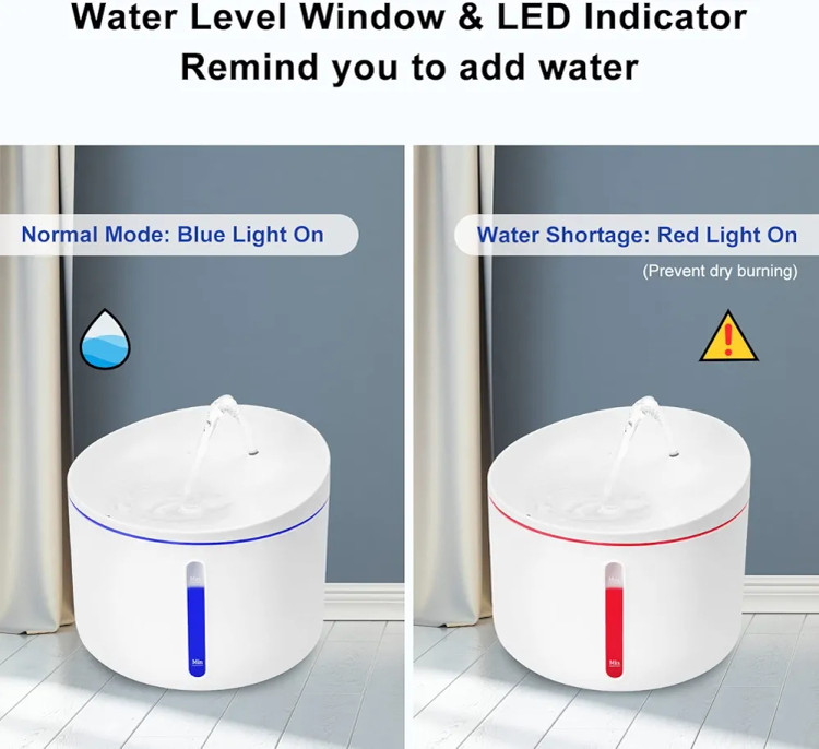 🔵【استفاده آسان و سطح آب قابل مشاهده】 راهاندازی فواره حیوانات خانگی فقط چند دقیقه طول میکشد و تمیز کردن و جداسازی آن آسان است. پنجره شفاف سطح آب، مجهز به چراغ LED، به شما کمک میکند تا سطح آب را در طول روز و شب کنترل کنید. وقتی سطح آب کم میشود، چراغ قرمز میشود و به شما میگوید که آب اضافه کنید و پمپ به طور خودکار خاموش میشود.