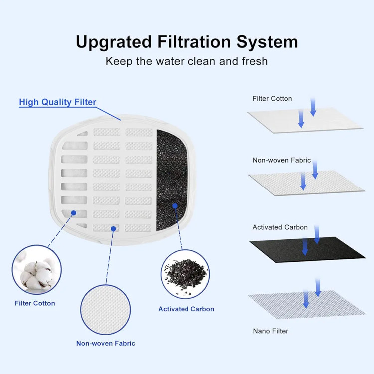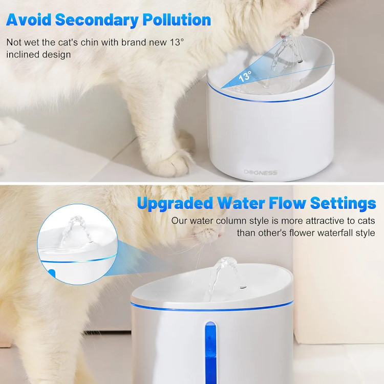 🔵【خروجی آب به سبک فواره】 فواره آب گربه با حالت خروجی مداوم فواره طراحی شده است و دارای آب روان پویا است که گربه و حیوانات خانگی کوچک شما را مجذوب خود میکند و آنها را به نوشیدن آب بیشتر ترغیب میکند. طراحی U شکل فواره کاملاً با چانه گربه مطابقت دارد و به طور موثر از ایجاد چانه سیاه که اغلب در گربهها دیده میشود جلوگیری میکند.