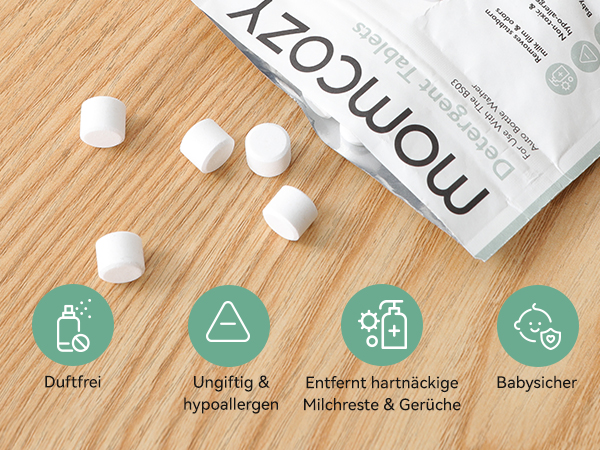 Momcozy Offizieller Flaschenreiniger-Waschblock, parfümfrei und babysicher, passend für Momcozy KleanPal Pro, 120 Tabletten