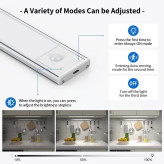 عملکرد کمنور و حافظه: برای تنظیم روشنایی کافی است فشار طولانی مدت را فشار دهید. روشنایی را می توان آزادانه از نور محیطی دلپذیر تا واقعاً روشن تنظیم کرد. نوار چراغ LED برای آشپزخانه دارای عملکرد حافظه است تا آخرین حالت خاموش را حفظ کند. نور کابینت سنسور حرکت تمام نیازهای مختلف شما را برآورده می کند