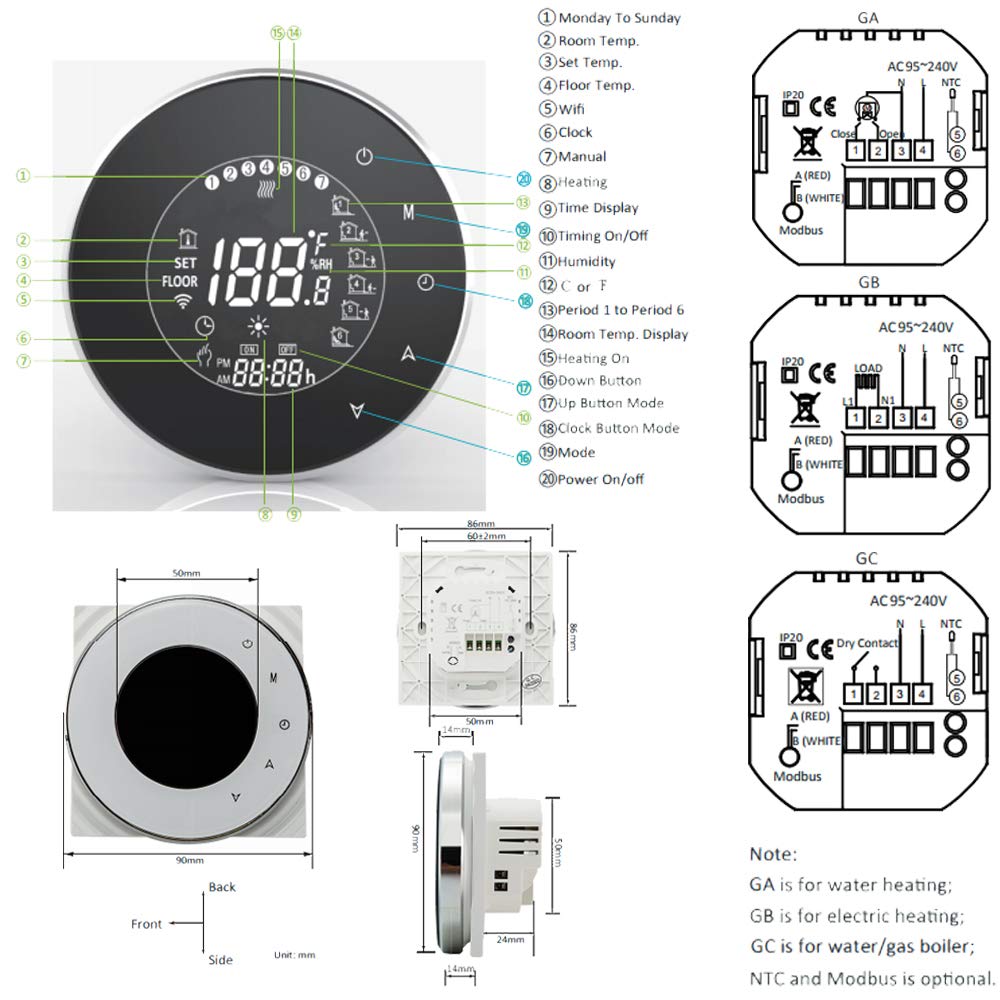 ✅️ به نماد تصویر توجه کنید و عملکرد مورد نیاز خود را انتخاب کنید. سری WIFI: ترموستات کنترل از راه دور My BECA Smart را از طریق برنامه تلفن همراه دانلود کنید. سازگار با اکثر جعبههای هوشمند موجود در بازار، مانند Google Home، Alexa، IFTTT.